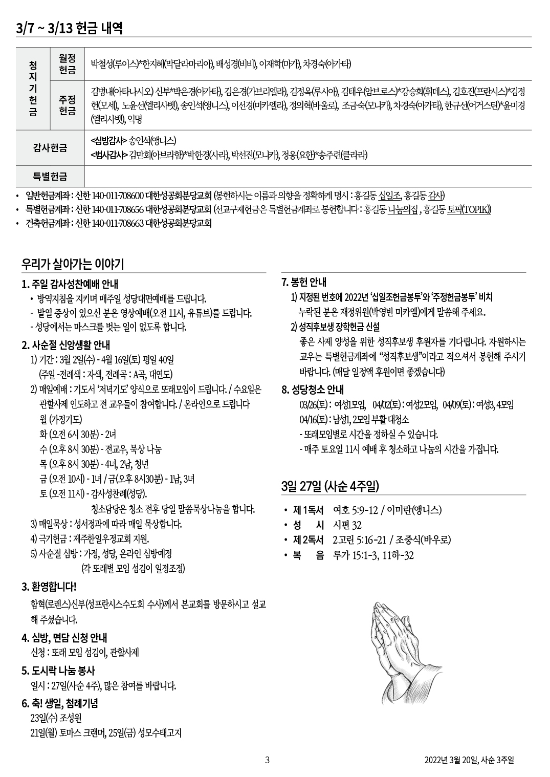 교회 주보 사순 3주일 by 분당교회 2022. 3. 20. 2022년 3월 20일 사순 3주일 교회주보 공유하기 게시글 관리 대한성공회 분당교회 '교회 주보' 카테고리의 다른 글 부활대축일 (0) 2022.04.16 사순 4주일 (0) 2022.03.27 사순 2주일 (0) 2022.03.13 사순 1주일 (0) 2022.03.06 재의수요일(재축복식) (0) 2022.03.02 관련글 부활대축일 사순 4주일 사순 2주일 사순 1주일 댓글