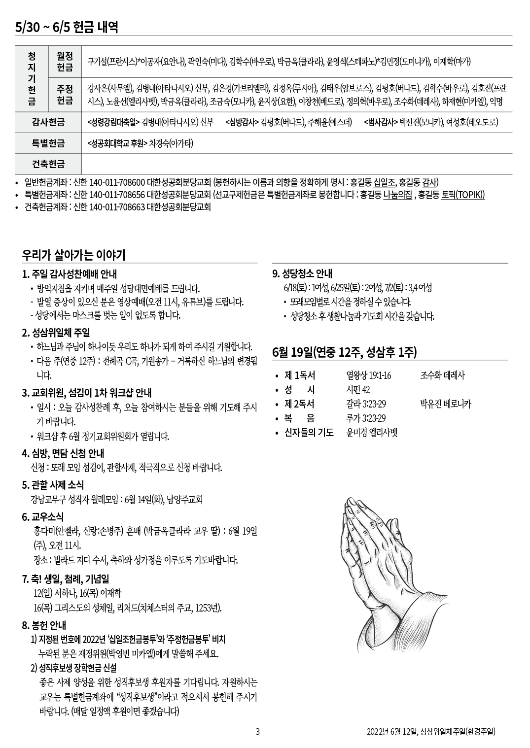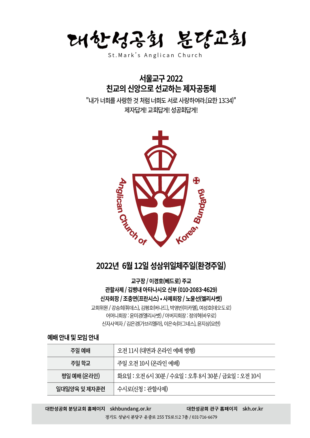 교회 주보 성삼위일체주일 by 분당교회 2022. 6. 12. 2022년 6월 12일 성삼위일체주일(환경주일) 교회주보 공유하기 게시글 관리 대한성공회 분당교회 '교회 주보' 카테고리의 다른 글 연중 13주일 (0) 2022.06.26 연중 12주일 (0) 2022.06.19 성령강림주일 (0) 2022.06.05 승천대축일 (0) 2022.05.29 부활 6주일 (0) 2022.05.22 관련글 연중 13주일 연중 12주일 성령강림주일 승천대축일 댓글