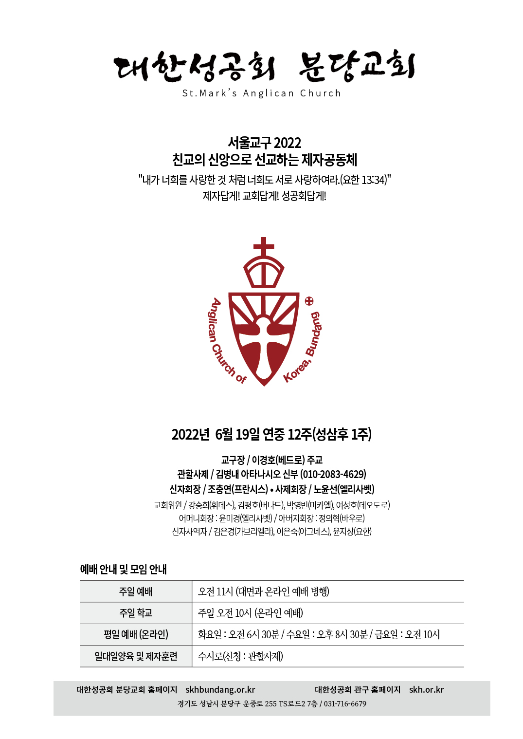 교회 주보 연중 12주일 by 분당교회 2022. 6. 19. 2022년 6월 19일 연중 12주일 성공회 분당교회 주보 공유하기 게시글 관리 대한성공회 분당교회 '교회 주보' 카테고리의 다른 글 맥추감사주일 (0) 2022.07.03 연중 13주일 (0) 2022.06.26 성삼위일체주일 (0) 2022.06.12 성령강림주일 (0) 2022.06.05 승천대축일 (0) 2022.05.29 관련글 맥추감사주일 연중 13주일 성삼위일체주일 성령강림주일 댓글