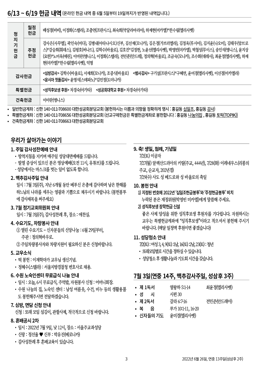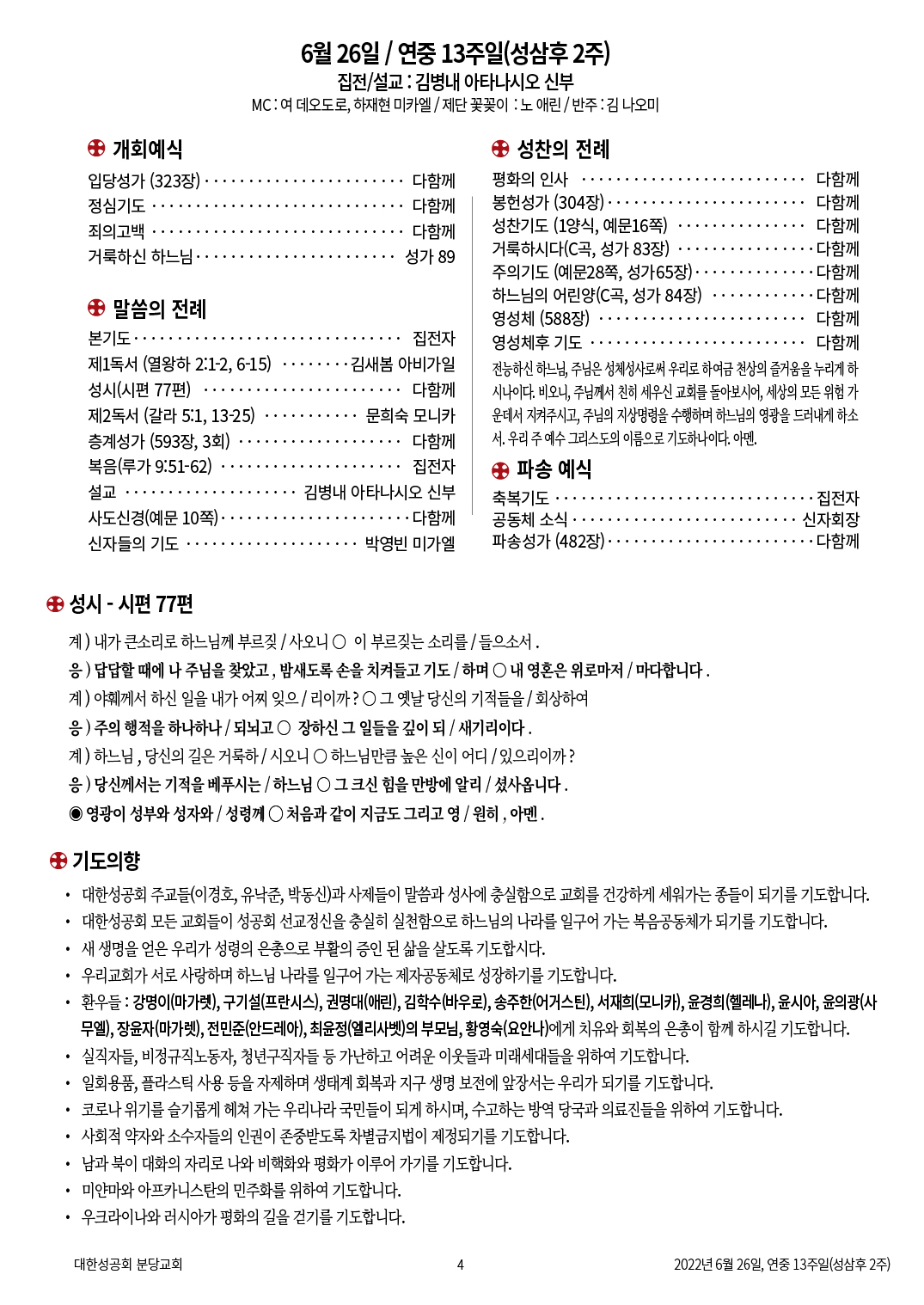 교회 주보 연중 13주일 by 분당교회 2022. 6. 26. 2022년 6월 26일 연중 13주일 교회주보 공유하기 게시글 관리 대한성공회 분당교회 '교회 주보' 카테고리의 다른 글 연중 15주일 (0) 2022.07.10 맥추감사주일 (0) 2022.07.03 연중 12주일 (0) 2022.06.19 성삼위일체주일 (0) 2022.06.12 성령강림주일 (0) 2022.06.05 관련글 연중 15주일 맥추감사주일 연중 12주일 성삼위일체주일 댓글