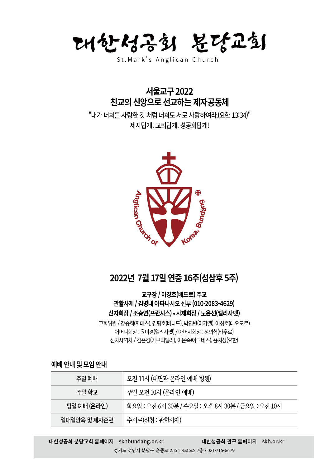 교회 주보 연중 16주일 by 분당교회 2022. 7. 17. 2022년 7월 17일 연중 16주일 교회주보 공유하기 게시글 관리 대한성공회 분당교회 '교회 주보' 카테고리의 다른 글 연중 18주일 (0) 2022.07.31 연중 17주일 교회주보 (0) 2022.07.24 연중 15주일 (0) 2022.07.10 맥추감사주일 (0) 2022.07.03 연중 13주일 (0) 2022.06.26 관련글 연중 18주일 연중 17주일 교회주보 연중 15주일 맥추감사주일 댓글