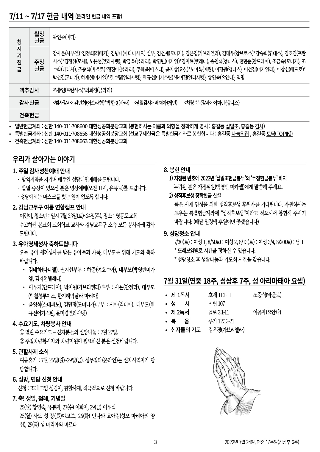 교회 주보 연중 17주일 교회주보 by 분당교회 2022. 7. 24. 공유하기 게시글 관리 대한성공회 분당교회 '교회 주보' 카테고리의 다른 글 연중 19주일 교회주보 (0) 2022.08.07 연중 18주일 (0) 2022.07.31 연중 16주일 (0) 2022.07.17 연중 15주일 (0) 2022.07.10 맥추감사주일 (0) 2022.07.03 관련글 연중 19주일 교회주보 연중 18주일 연중 16주일 연중 15주일 댓글