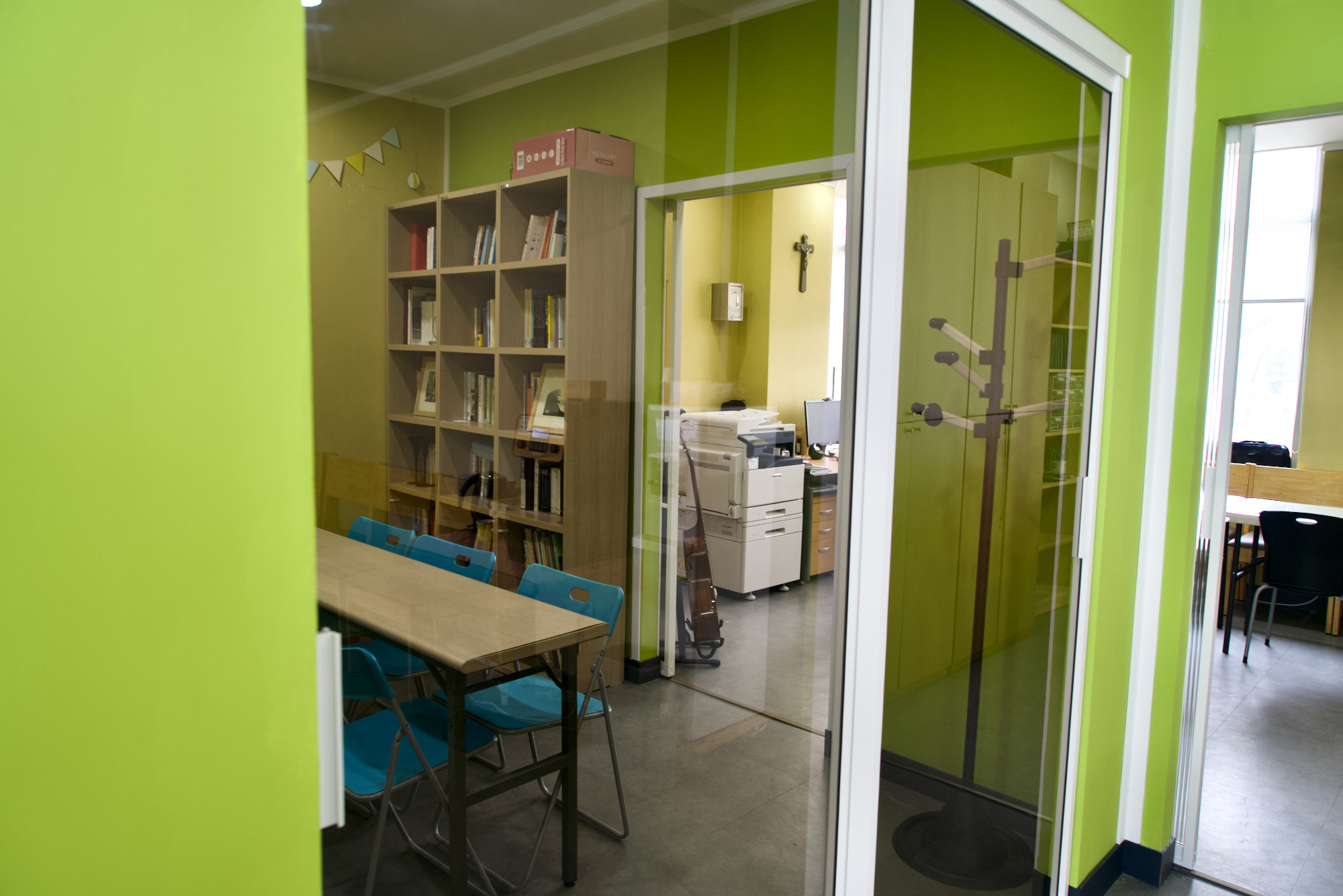 학생회(주일학교)와 사무실 공간에 벽을 세워