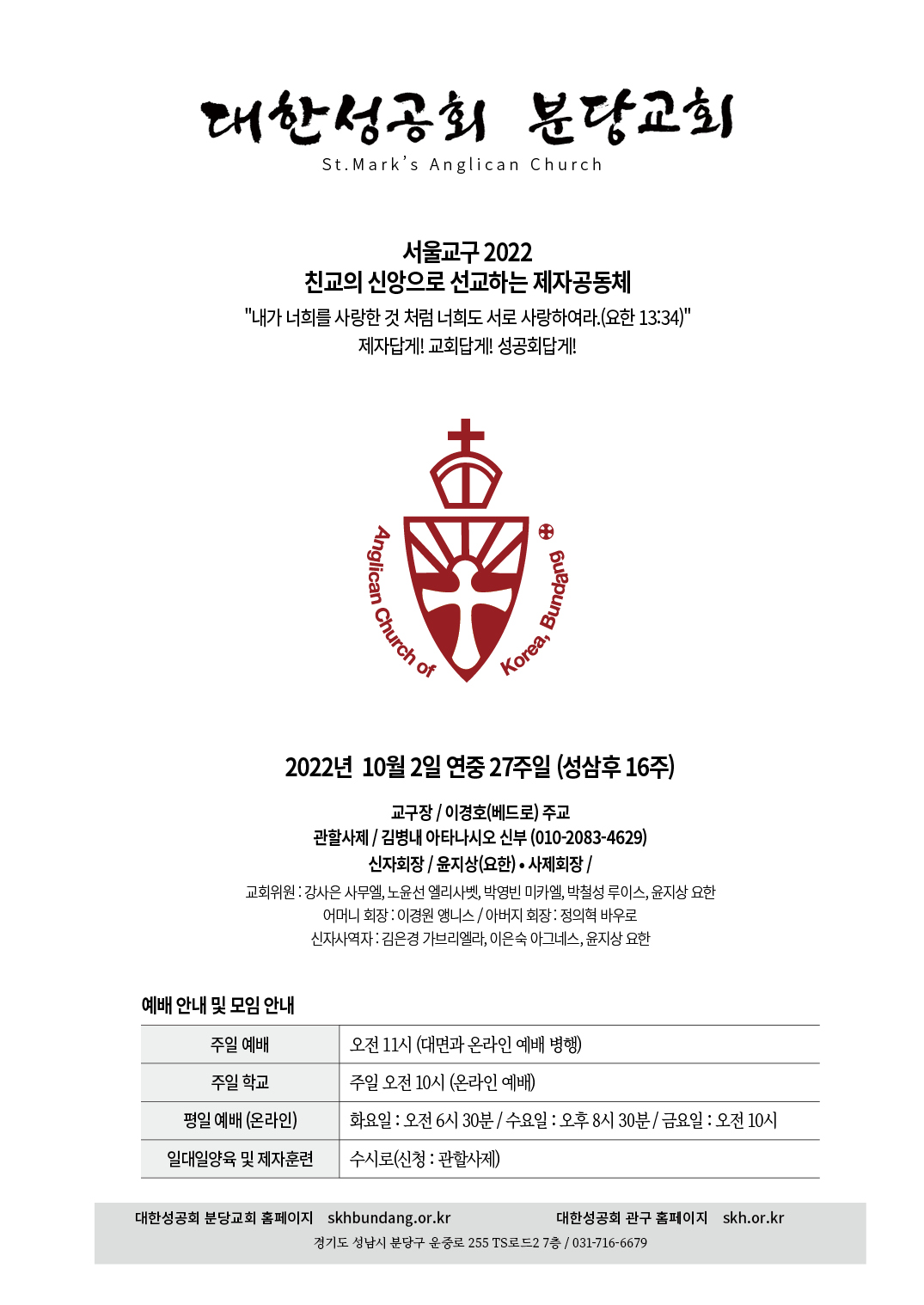 교회 주보 연중 27주일 by 분당교회 2022. 10. 8. 2022년 10월 2일 연중 27주일 교회주보 공유하기 게시글 관리 대한성공회 분당교회 '교회 주보' 카테고리의 다른 글 연중 30주일 (0) 2022.10.25 연중 28주일 (0) 2022.10.09 연중 26주일 (0) 2022.09.25 연중 25주일 (0) 2022.09.18 연중 24주일 (0) 2022.09.11 관련글 연중 30주일 연중 28주일 연중 26주일 연중 25주일 댓글