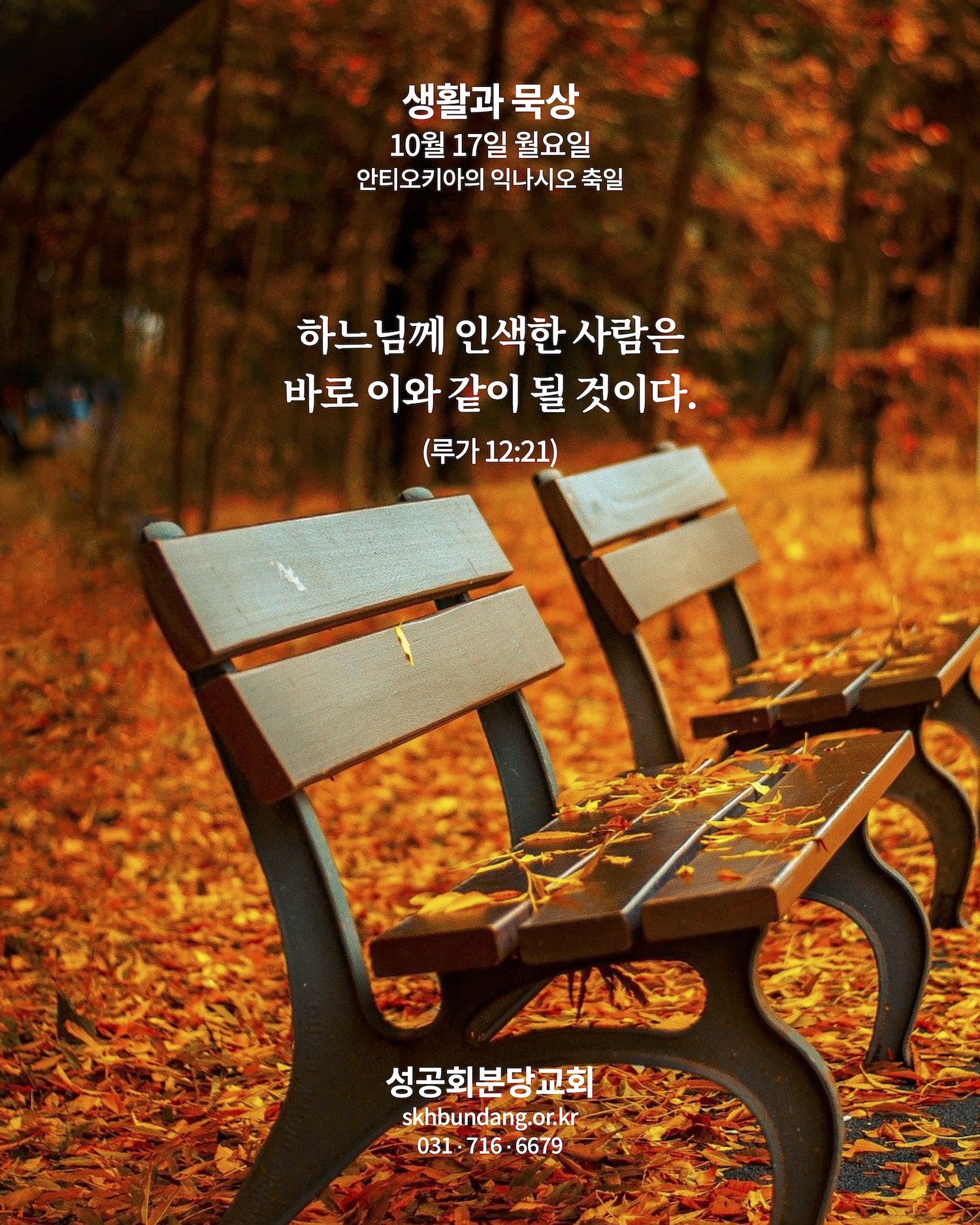 묵상카드 서로 서로 나누는 삶 by 분당교회 2022. 10. 17. 2022년 10월 17일 월요일 루가 12:13-21 안티오키아의 익나시오 축일 <묵상기도> 오늘 하루도 하늘을 서로서로 나누어 보듯이 나누는 사랑의 삶이 되기를 기도합니다. 공유하기 게시글 관리 대한성공회 분당교회 '묵상카드' 카테고리의 다른 글 은총의 책임 (0) 2022.10.19 양치기 (0) 2022.10.18 요가와 기도 (0) 2022.10.16 증인의 삶 (0) 2022.10.15 두려운데 두렵지 않은 하느님 (0) 2022.10.14 관련글 은총의 책임 양치기 요가와 기도 증인의 삶 댓글