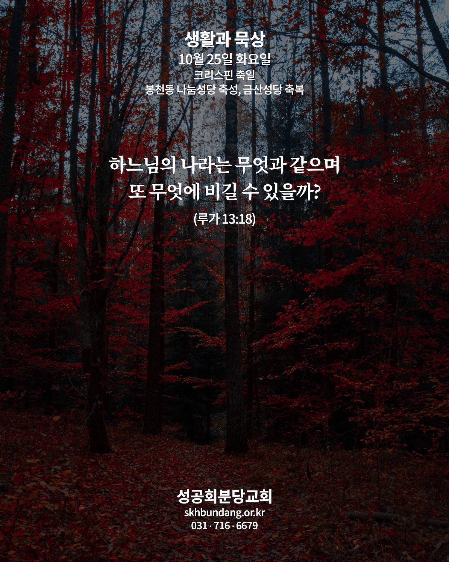 주님의 겨자씨와 누룩으로 저희가 있게 하소서. 아멘.