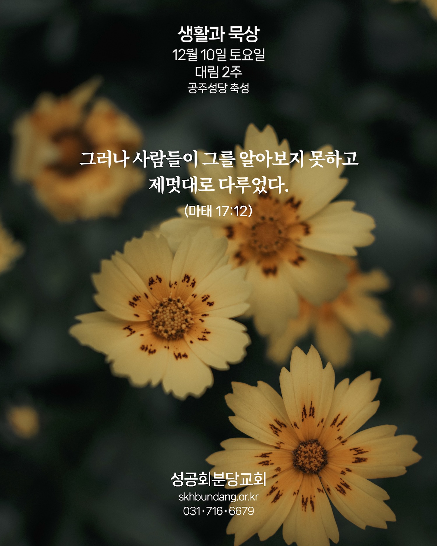 제 삶 속에서 만나는 예수님을 잘 섬길 수 있는