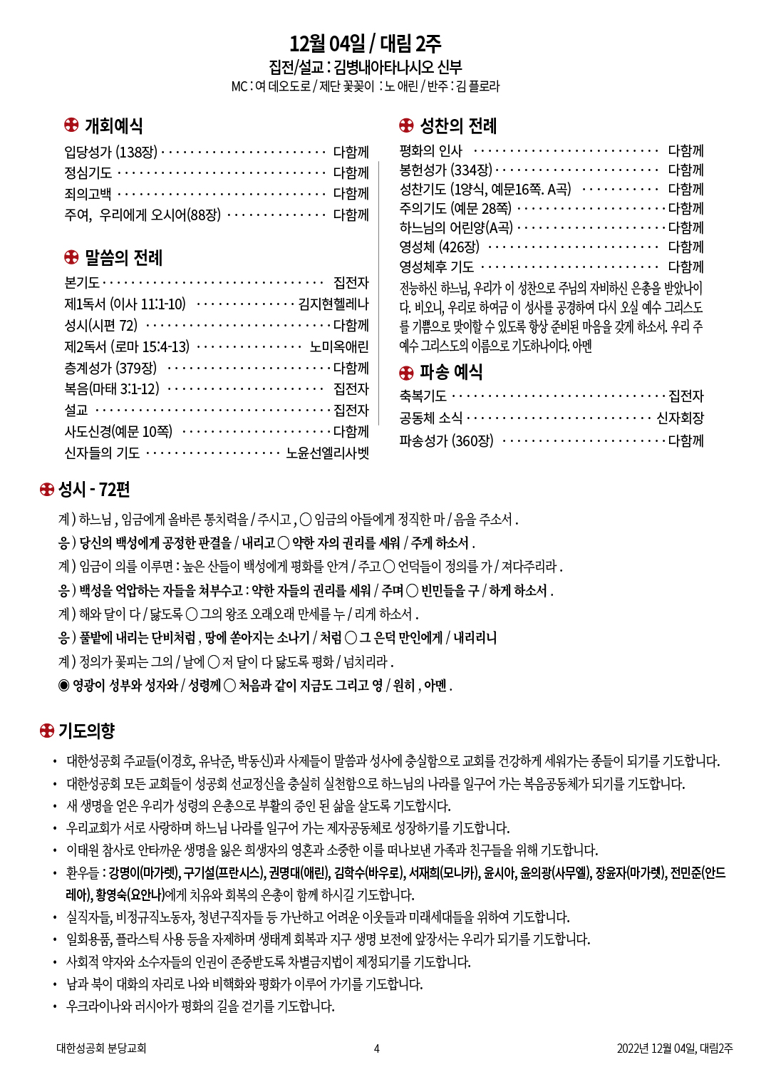 교회 주보 대림 2주일 by 분당교회 2022. 12. 4. 성공회 분당교회 교회주보 2022년 12월 04일 공유하기 게시글 관리 대한성공회 분당교회 '교회 주보' 카테고리의 다른 글 대림 4주일 (0) 2022.12.18 대림 3주일 (0) 2022.12.11 대림1주일 (0) 2022.11.27 연중 32주일 (0) 2022.11.06 연중 30주일 (0) 2022.10.25 관련글 대림 4주일 대림 3주일 대림1주일 연중 32주일 댓글
