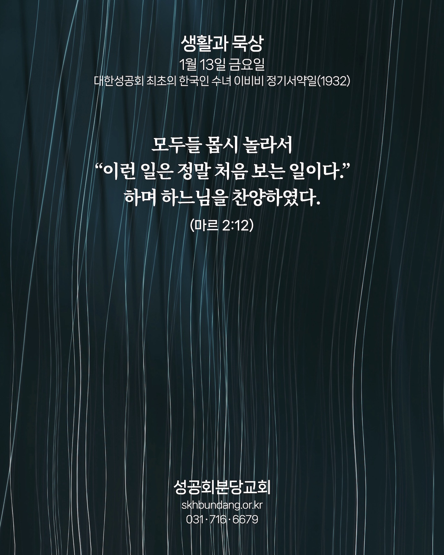 묵상카드 하느님을 크게 찬양하라 by 분당교회 2023. 1. 13. 2023년 1월 13일 금요일 마르 2:1-12 대한성공회 최초의 한국인 수녀 이비비 정기서약일(1932) <묵상기도> 주님, 2023년 새해 이 민족의 온전함을 향한 일을 시작하게 하소서. 공유하기 게시글 관리 대한성공회 분당교회 '묵상카드' 카테고리의 다른 글 하느님의 어린 양 (0) 2023.01.15 옆집 아줌마 (0) 2023.01.14 이정표 (0) 2023.01.12 함께 걷기 (0) 2023.01.11 주님의 간섭 (0) 2023.01.10 관련글 하느님의 어린 양 옆집 아줌마 이정표 함께 걷기 댓글