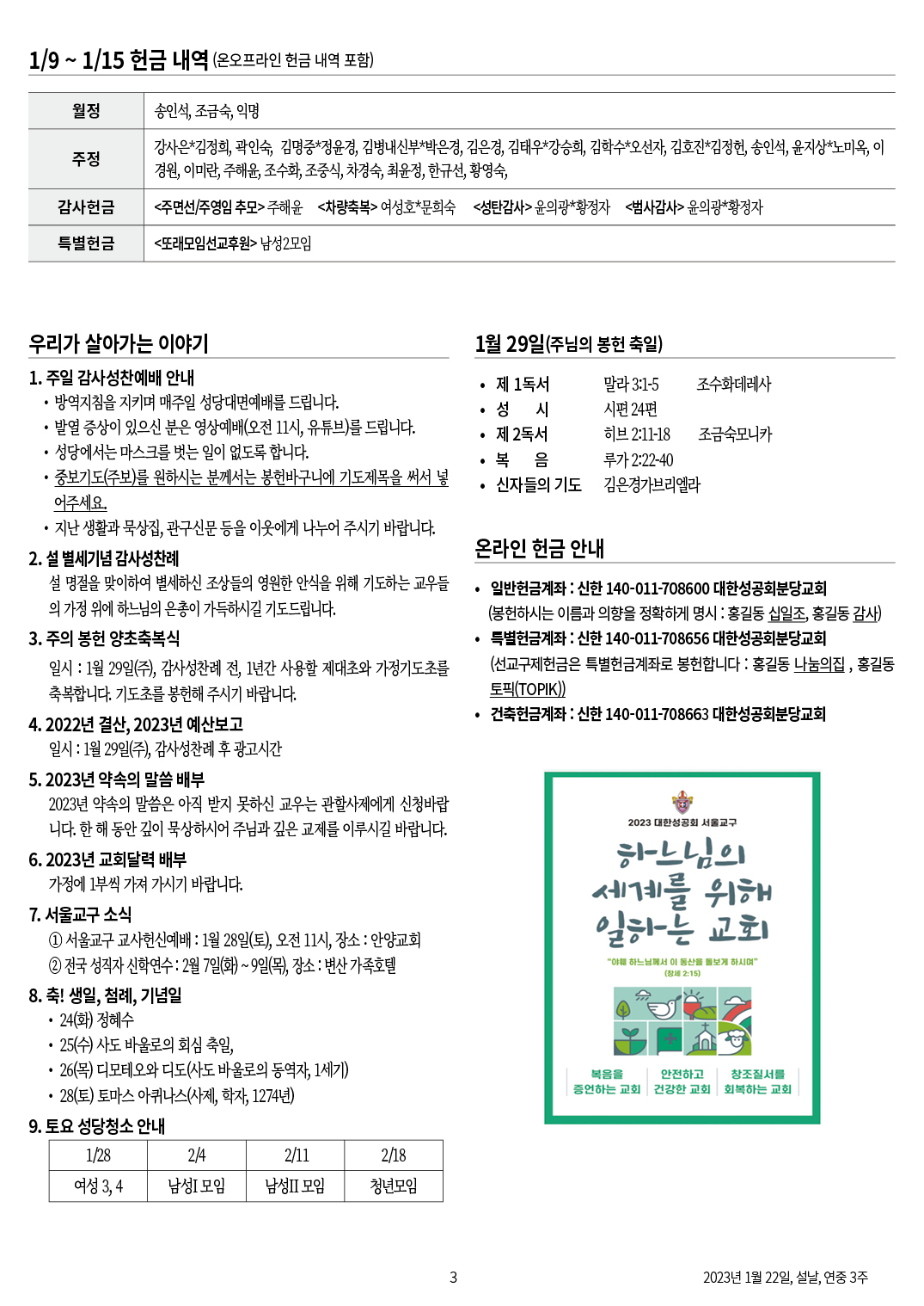 교회 주보 설날, 연중 3주일 by 분당교회 2023. 1. 22. 2023년 1월 22일 연중 3주일 설날 분당교회 주보 공유하기 게시글 관리 대한성공회 분당교회 '교회 주보' 카테고리의 다른 글 연중 5주일 (0) 2023.02.12 주의 봉헌, 연중 4주일 (0) 2023.02.12 대림 4주일 (0) 2022.12.18 대림 3주일 (0) 2022.12.11 대림 2주일 (0) 2022.12.04 관련글 연중 5주일 주의 봉헌, 연중 4주일 대림 4주일 대림 3주일 댓글