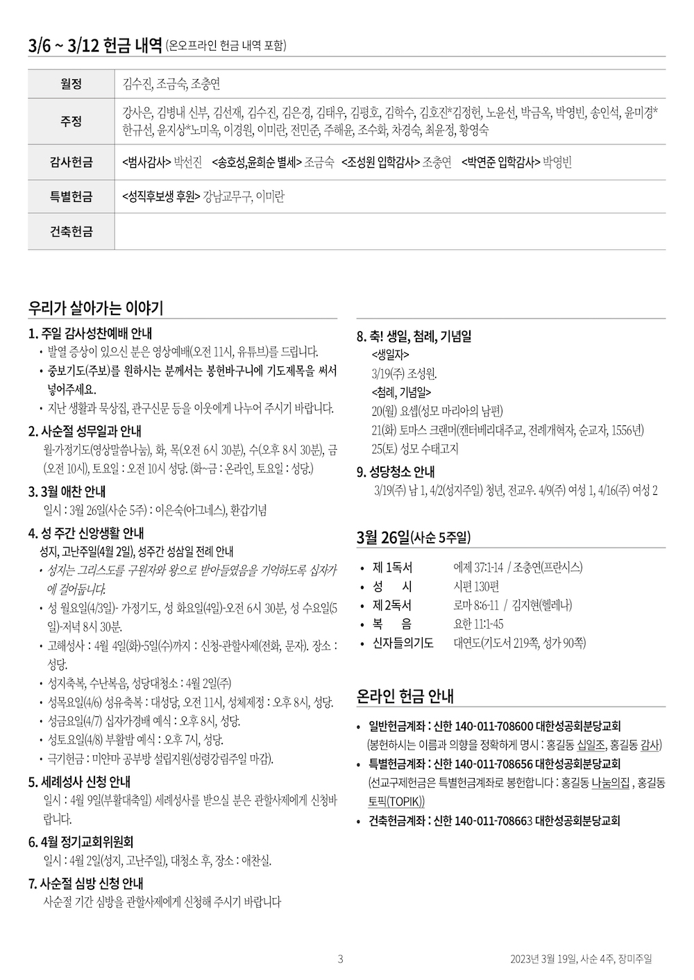 교회 주보 사순 4주일 (장미주일) by 분당교회 2023. 3. 19. 2023년 3월 19일 장미주일 성공회 분당교회 주보 공유하기 게시글 관리 대한성공회 분당교회 '교회 주보' 카테고리의 다른 글 성지고난주일 (0) 2023.04.02 사순 5주일 (0) 2023.03.26 사순 3주일 (0) 2023.03.12 사순2주일 (0) 2023.03.05 사순 1주일 (0) 2023.02.26 관련글 성지고난주일 사순 5주일 사순 3주일 사순2주일 댓글