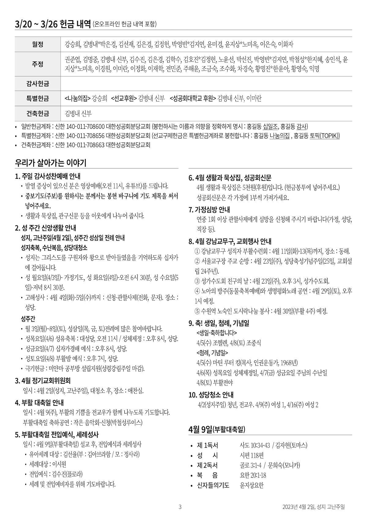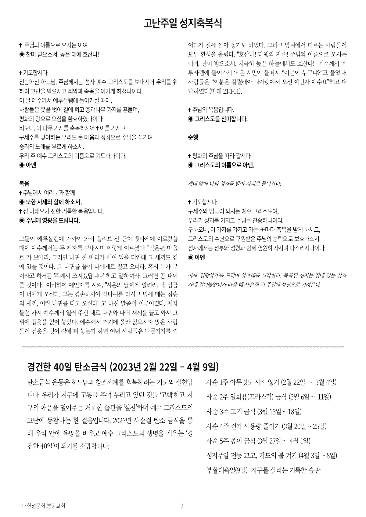 교회 주보 성지고난주일 by 분당교회 2023. 4. 2. 2023년 4월 2일 성지고난주일 교회주보 공유하기 게시글 관리 대한성공회 분당교회 '교회 주보' 카테고리의 다른 글 부활 2주일 (0) 2023.04.16 부활 대축일 (0) 2023.04.09 사순 5주일 (0) 2023.03.26 사순 4주일 (장미주일) (0) 2023.03.19 사순 3주일 (0) 2023.03.12 관련글 부활 2주일 부활 대축일 사순 5주일 사순 4주일 (장미주일) 댓글