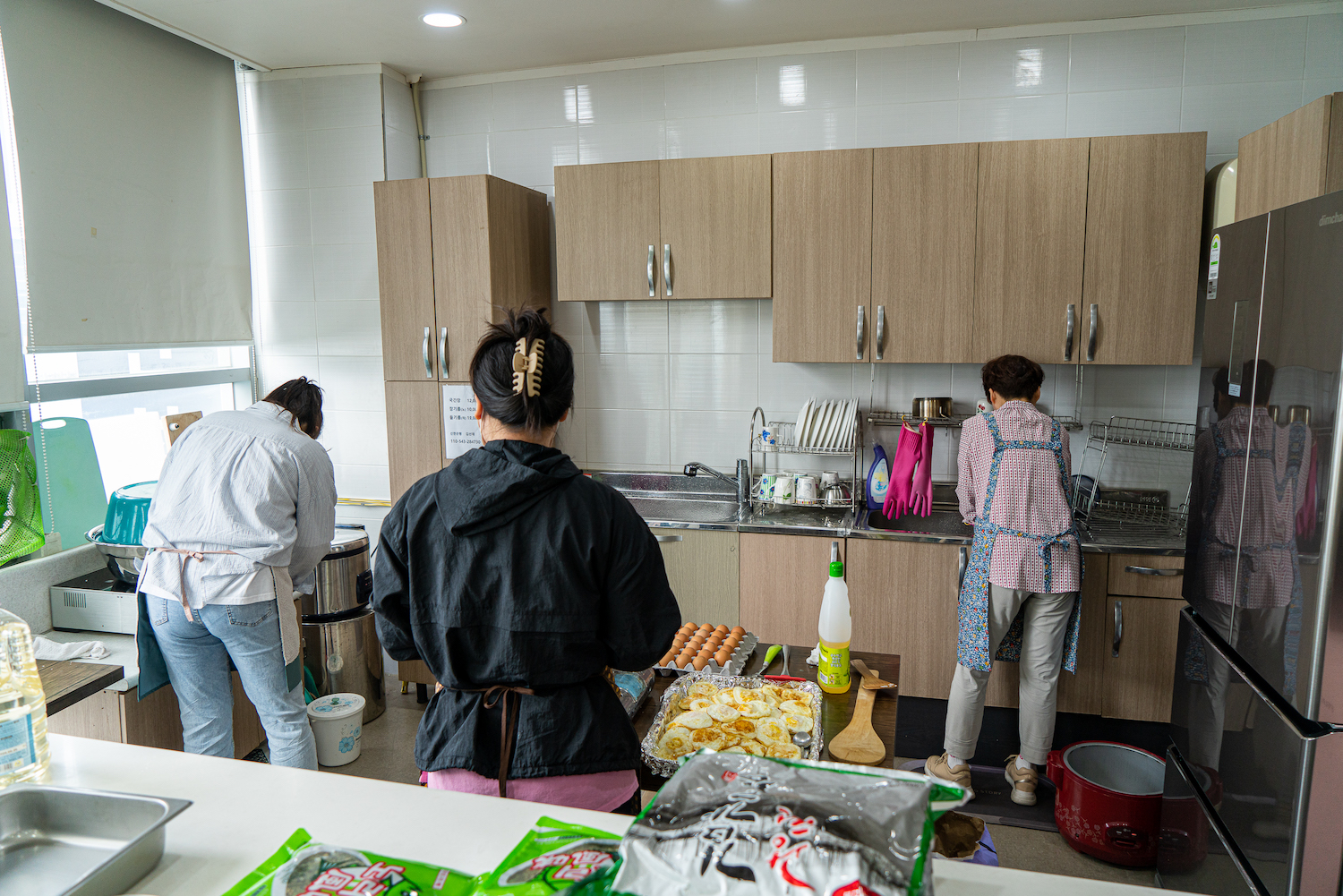 아침부터 음식을 만들고, 포장하고, 나눔까지