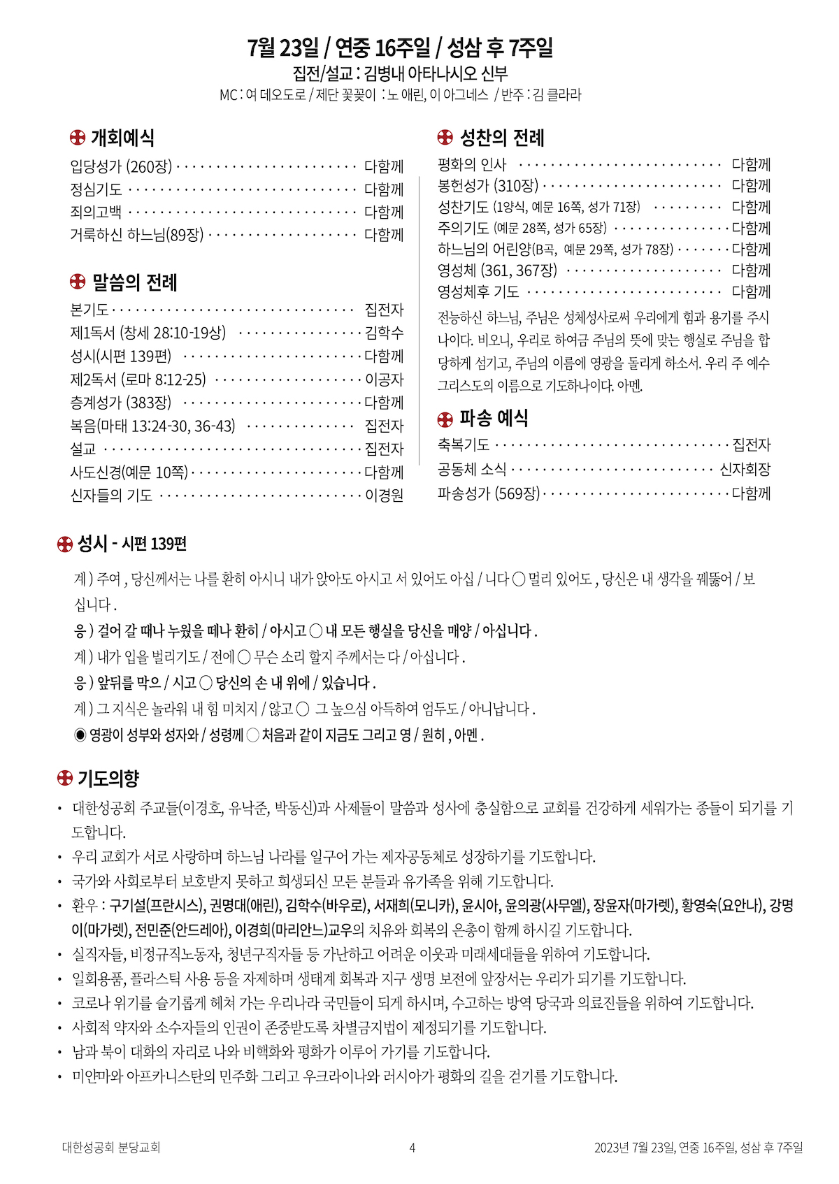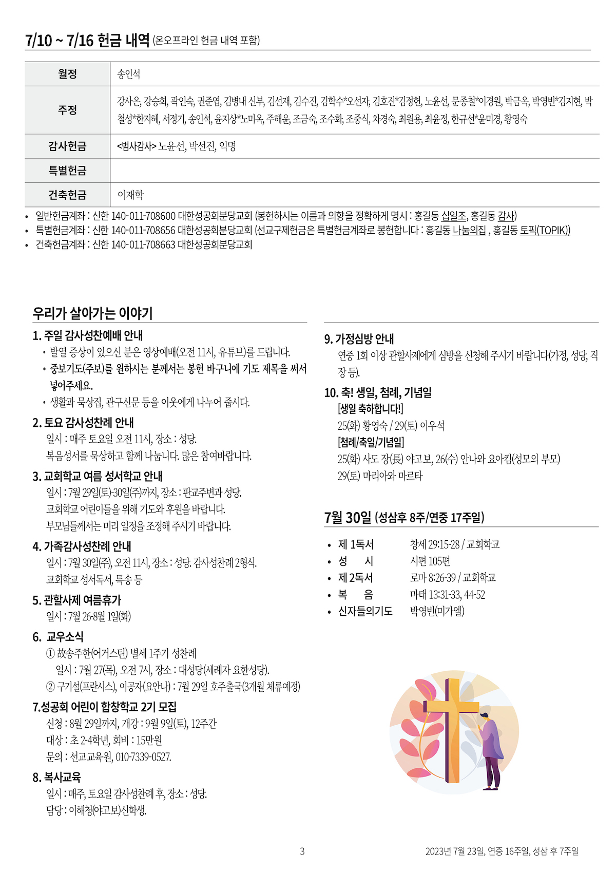 교회 주보 연중 16주일 by 분당교회 2023. 7. 23. 2023년 7월 23일 연중 16주일 성삼 후 7주일 공유하기 게시글 관리 대한성공회 분당교회 '교회 주보' 카테고리의 다른 글 주의 변모 주일 (0) 2023.08.06 가족주일 (0) 2023.07.30 연중 15주일 (0) 2023.07.17 연중 14주일 / 바다주일 (0) 2023.07.09 맥추감사주일 (0) 2023.07.02 관련글 주의 변모 주일 가족주일 연중 15주일 연중 14주일 / 바다주일 댓글