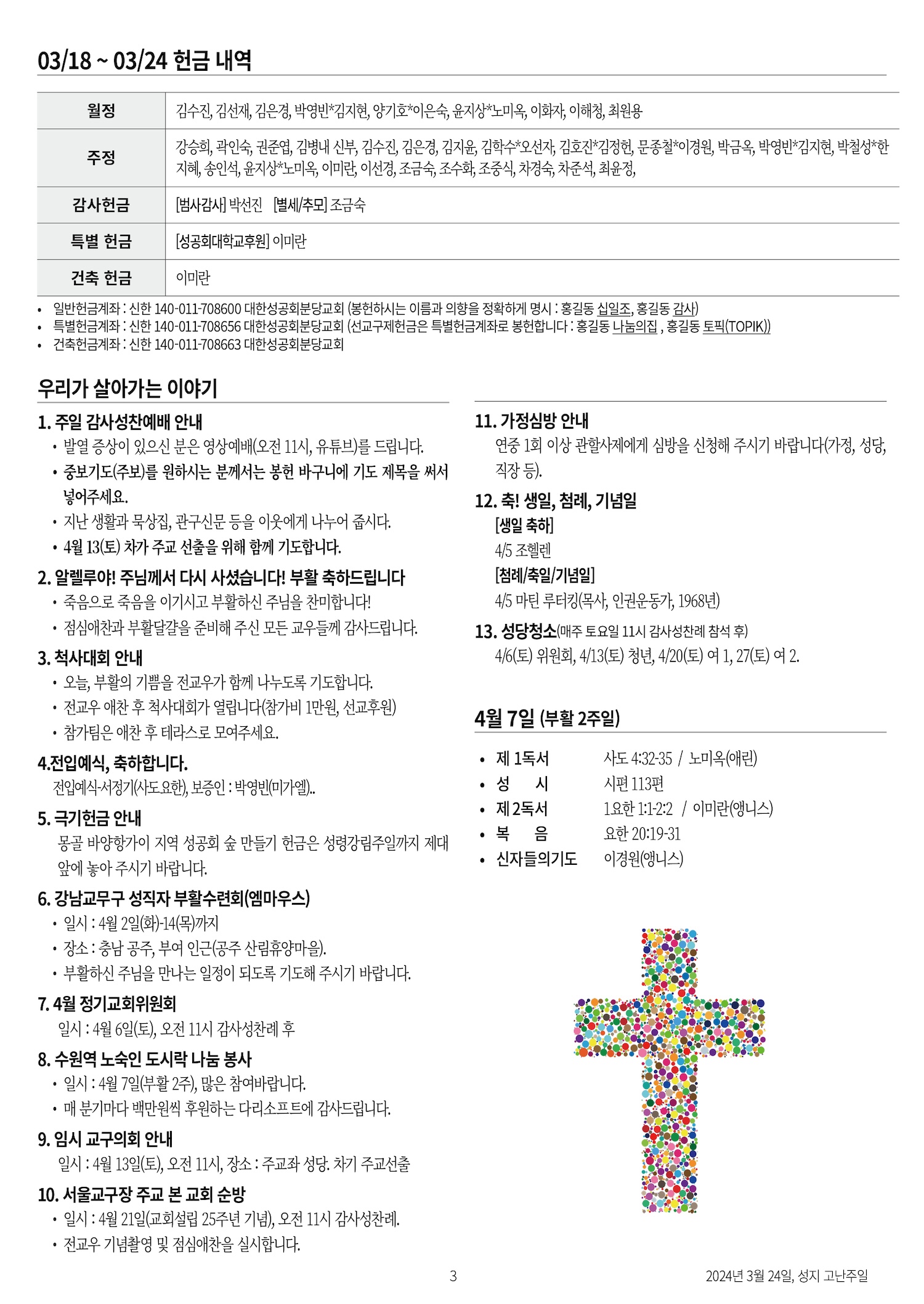 교회 주보 부활대축일 by 분당교회 2024. 3. 31. 2024년 3월 31일 부활대축일 공유하기 게시글 관리 대한성공회 분당교회 '교회 주보' 카테고리의 다른 글 부활 3주일 (0) 2024.04.14 부활 2주일 (0) 2024.04.07 부활밤 (0) 2024.03.31 성지고난주일 (0) 2024.03.24 사순 5주일 (0) 2024.03.17 관련글 부활 3주일 부활 2주일 부활밤 성지고난주일 댓글