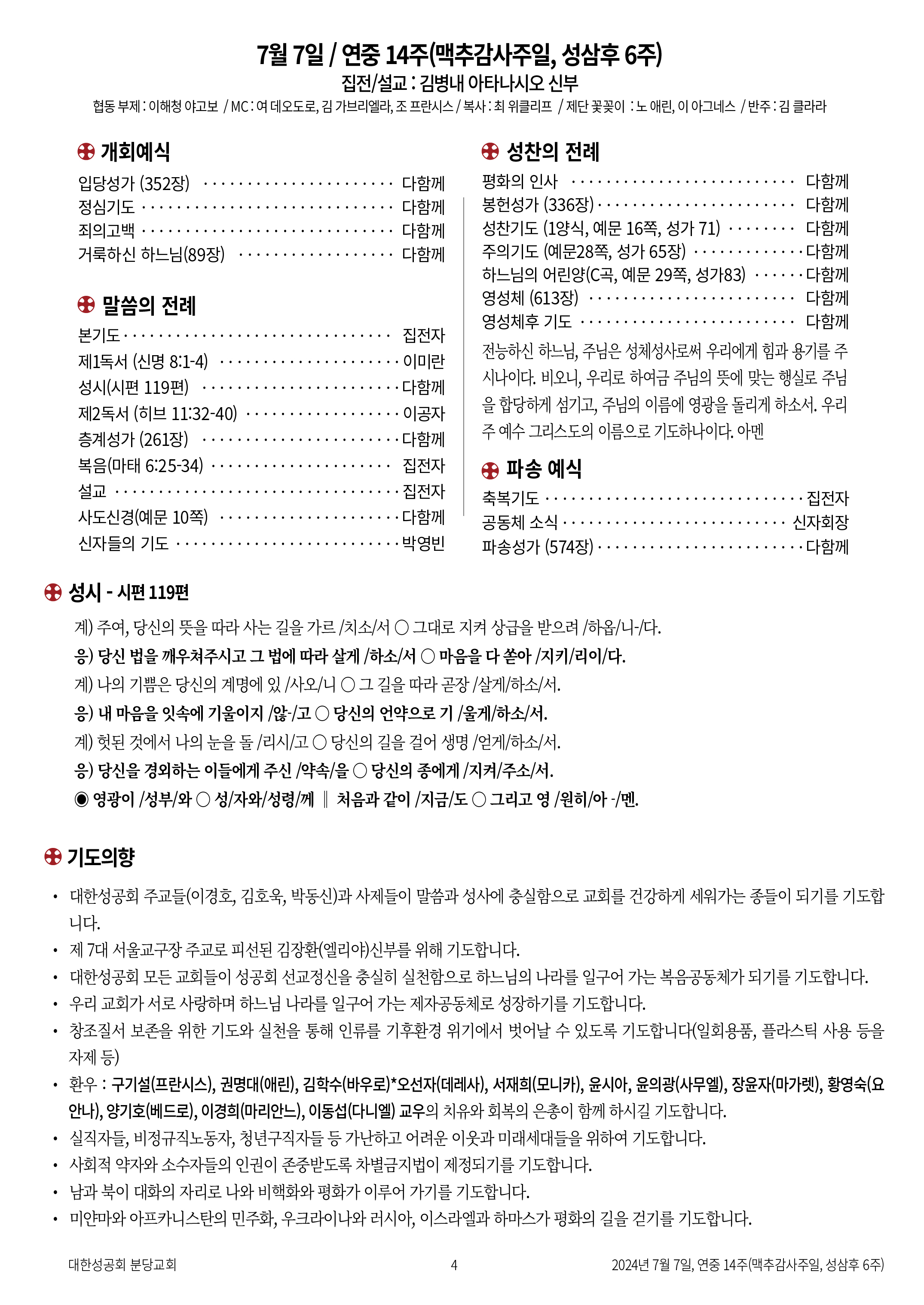 교회 주보 맥추감사주일 by 분당교회 2024. 7. 7. 2024년 7월 7일 맥추감사주일 연중 14주일 공유하기 게시글 관리 대한성공회 분당교회 '교회 주보' 카테고리의 다른 글 연중 16주일 (0) 2024.07.21 연중 15주일 (0) 2024.07.14 가족주일 (연중 13주) (0) 2024.06.30 연중 12주일 (0) 2024.06.23 연중 11주일 (0) 2024.06.16 관련글 연중 16주일 연중 15주일 가족주일 (연중 13주) 연중 12주일 댓글