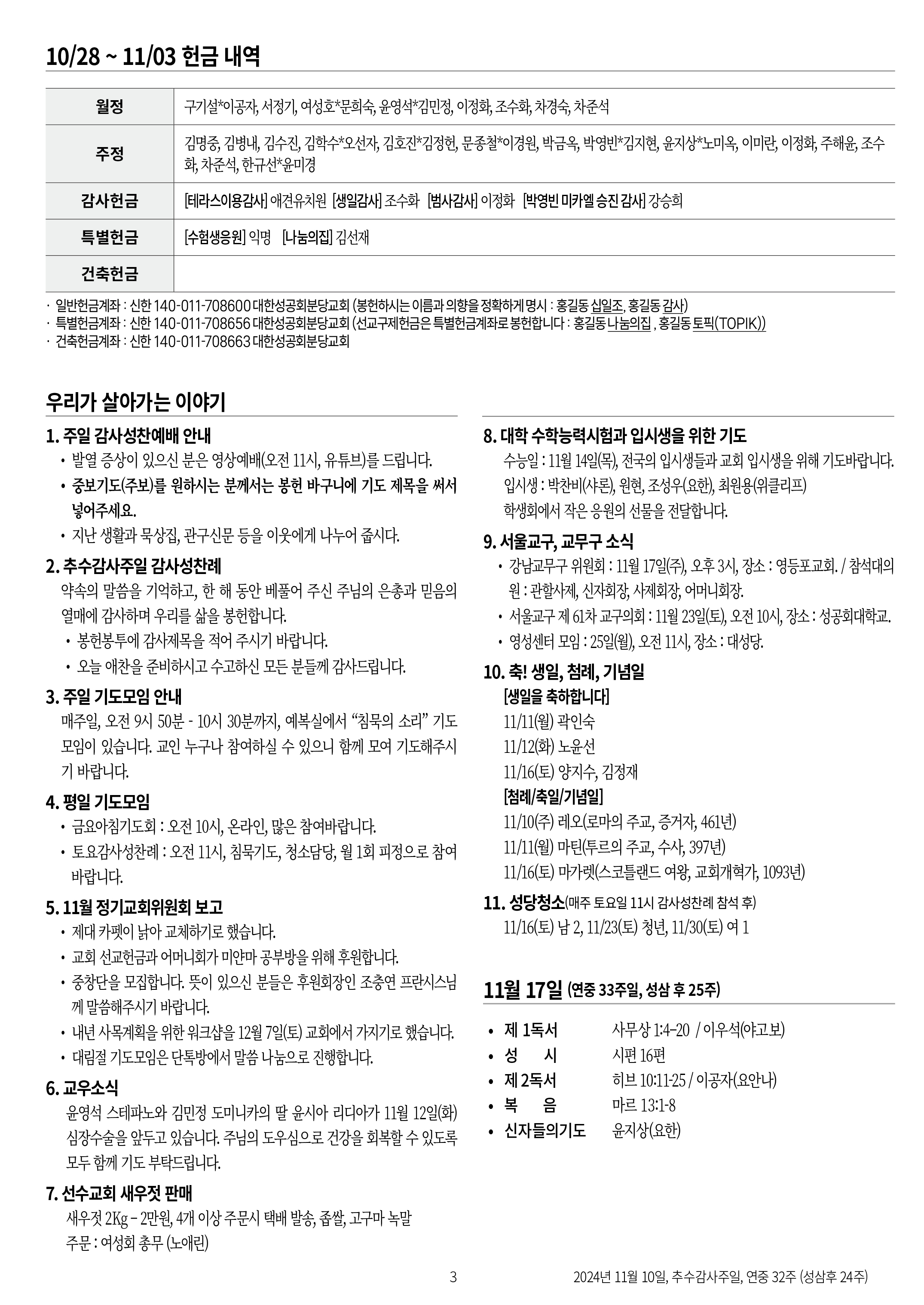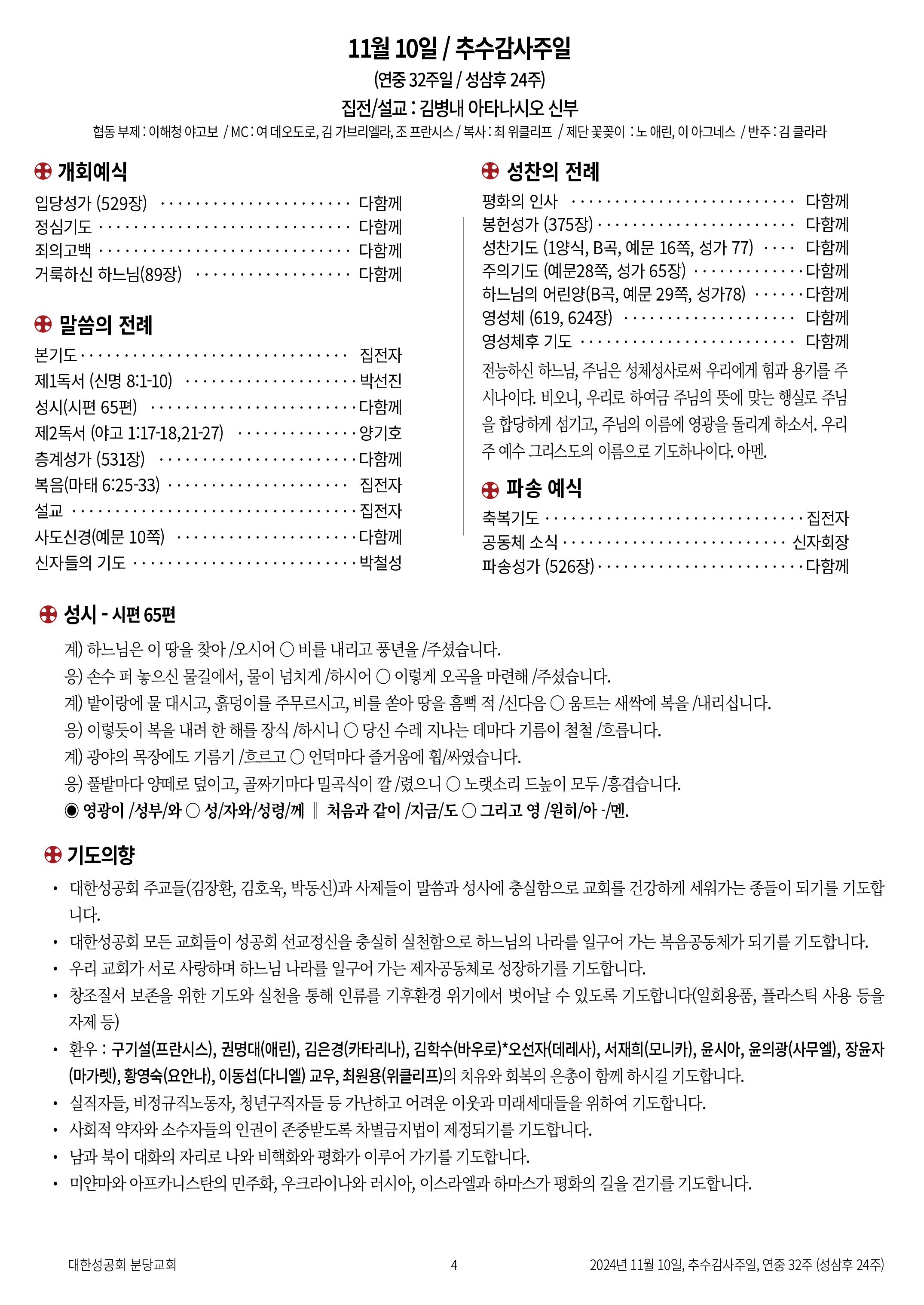 교회 주보 추수감사절 by 분당교회 2024. 11. 10. 2024년 11월 10일 추수감사절 공유하기 게시글 관리 대한성공회 분당교회 '교회 주보' 카테고리의 다른 글 왕이신 그리스도주일 (0) 2024.11.24 연중 33주일 (0) 2024.11.17 연중 31주일 (0) 2024.11.03 연중 29주일 (0) 2024.10.20 연중 28주 (0) 2024.10.13 관련글 왕이신 그리스도주일 연중 33주일 연중 31주일 연중 29주일 댓글