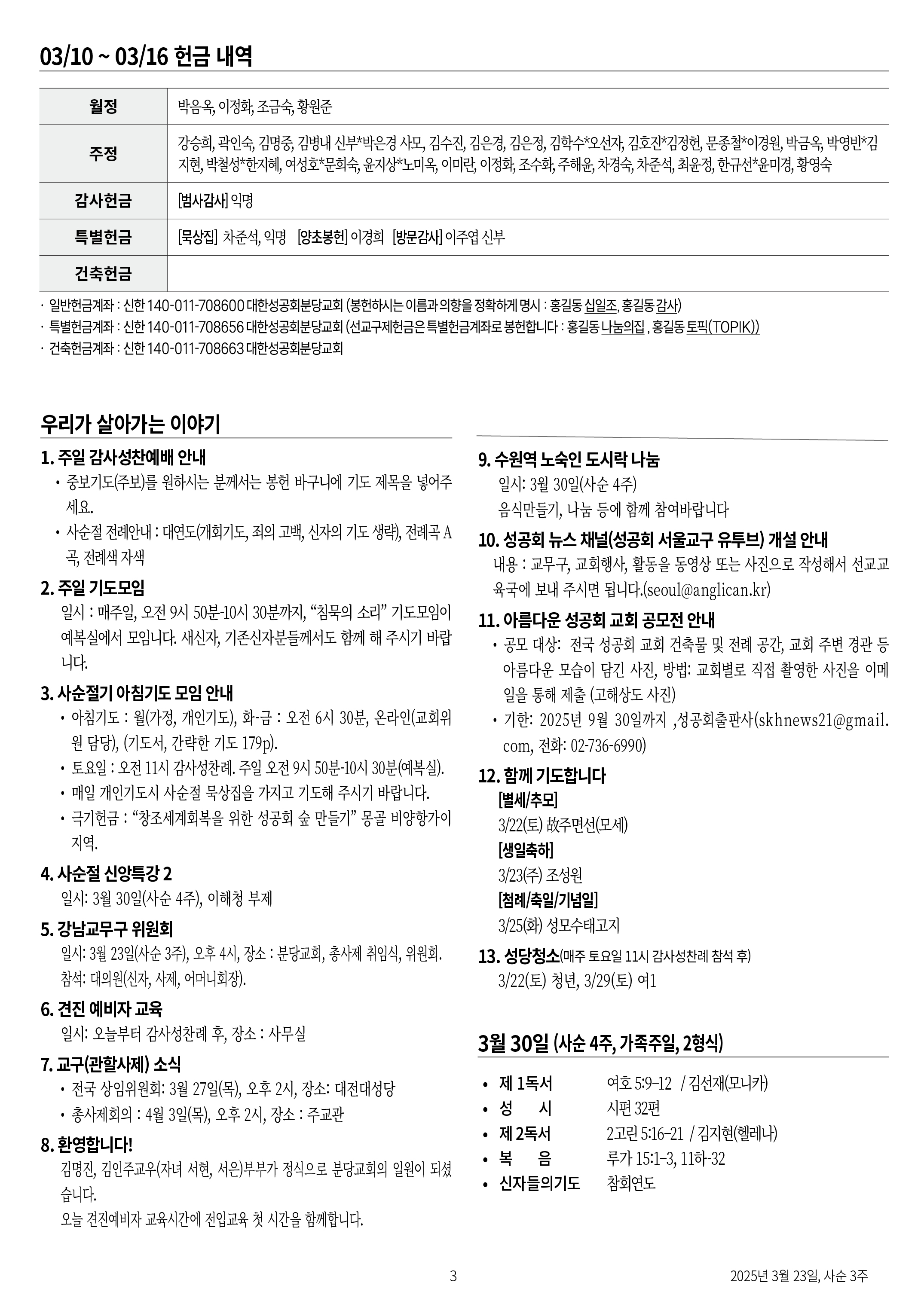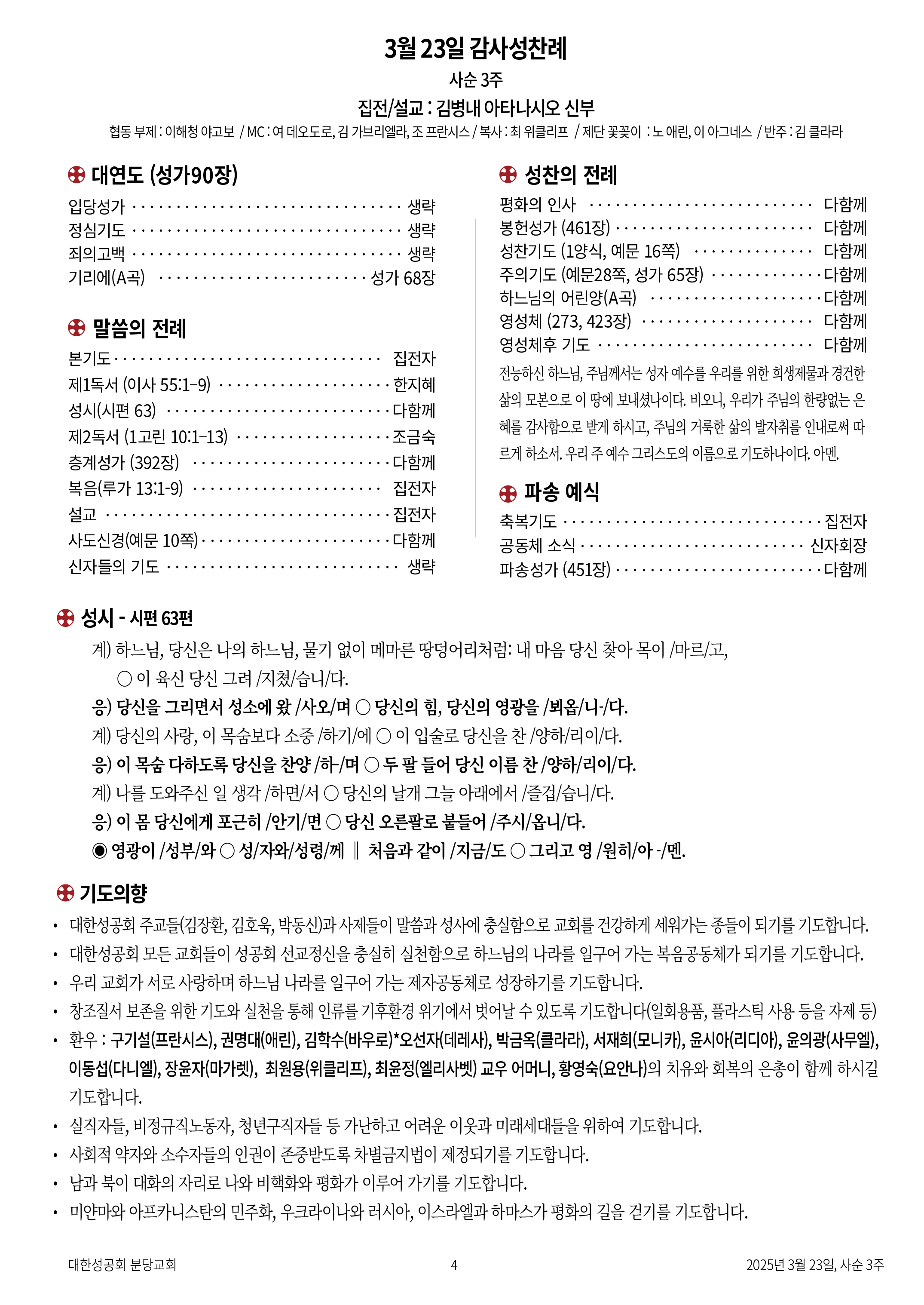 교회 주보 사순 3주 by 분당교회 2025. 3. 23. 2025년 3월 23일 사순 3주 공유하기 게시글 관리 대한성공회 분당교회 '교회 주보' 카테고리의 다른 글 사순 5주 (0) 2025.04.06 사순 4주 (0) 2025.03.30 사순 2주 (0) 2025.03.16 사순 1주 (0) 2025.03.09 연중 8주 (0) 2025.03.02 관련글 사순 5주 사순 4주 사순 2주 사순 1주 댓글