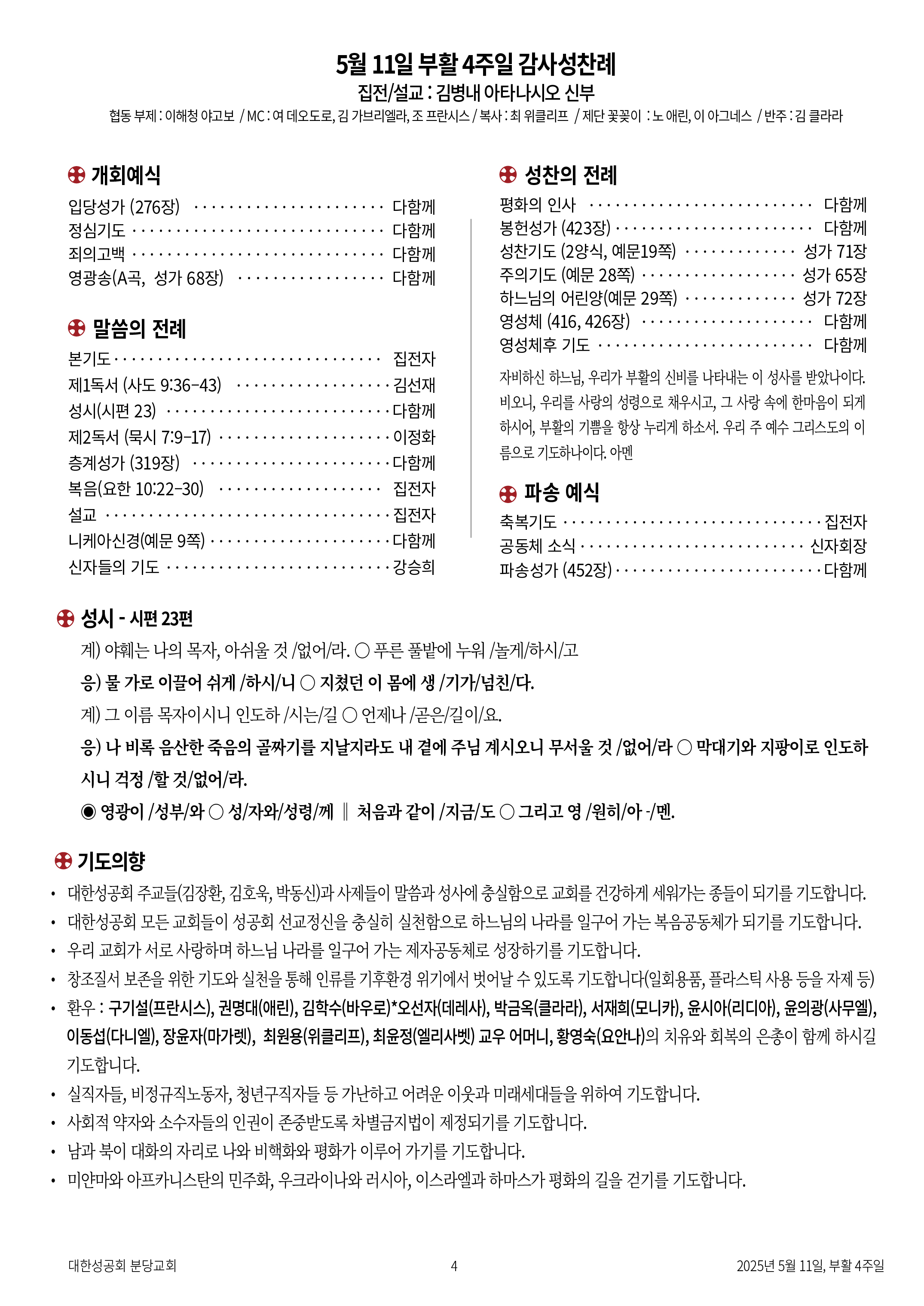 교회 주보 부활 4주일 by 푸드라이터 2025. 5. 11. 2025년 5월 11일 부활 4주일 공유하기 게시글 관리 대한성공회 분당교회 '교회 주보' 카테고리의 다른 글 부활 6주일 (0) 2025.05.25 부활 5주일 (0) 2025.05.18 부활 3주일 (0) 2025.05.04 부활2주일 (0) 2025.04.27 부활대축일 (0) 2025.04.20 관련글 부활 6주일 부활 5주일 부활 3주일 부활2주일 댓글