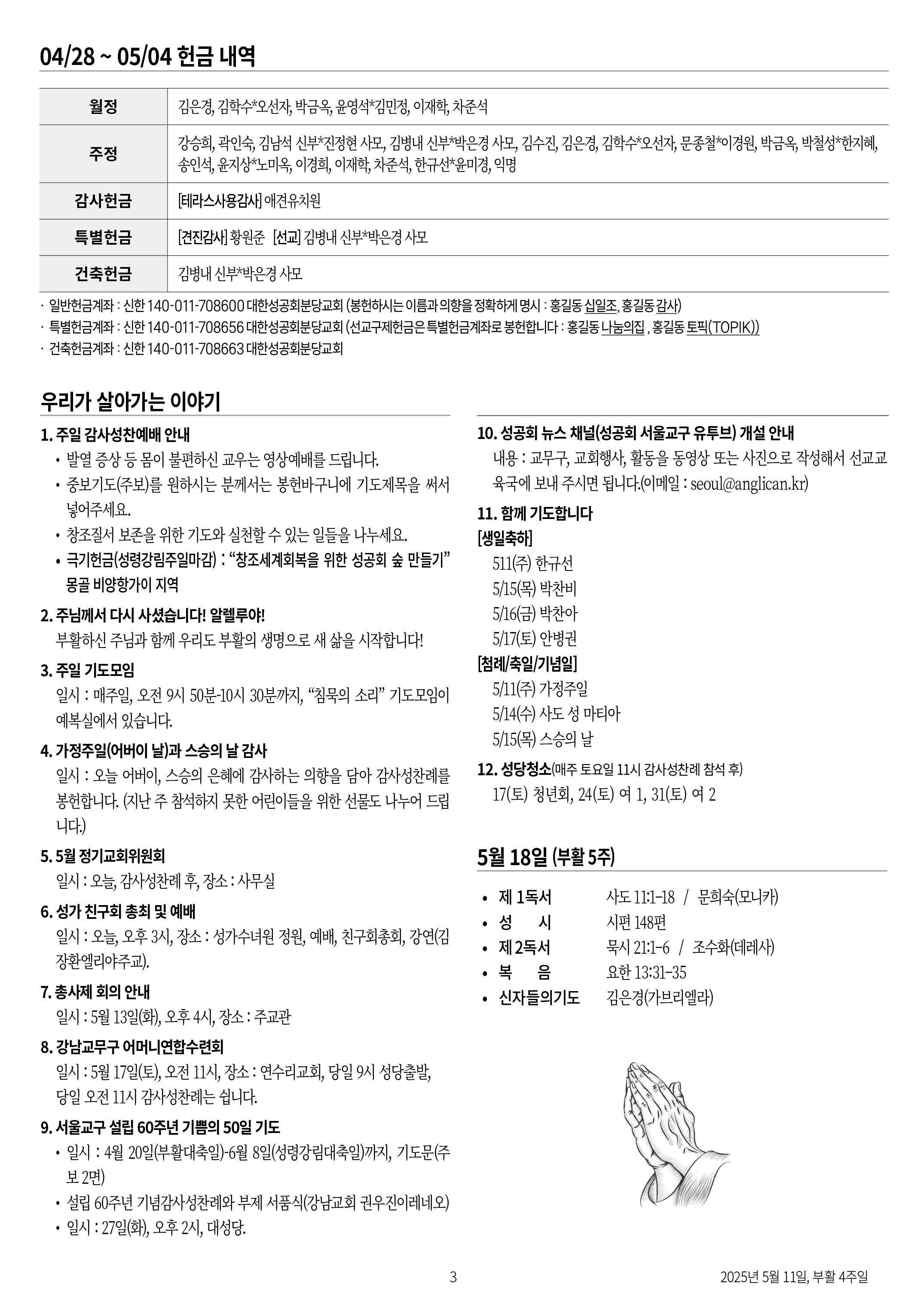 교회 주보 부활 4주일 by 푸드라이터 2025. 5. 11. 2025년 5월 11일 부활 4주일 공유하기 게시글 관리 대한성공회 분당교회 '교회 주보' 카테고리의 다른 글 부활 6주일 (0) 2025.05.25 부활 5주일 (0) 2025.05.18 부활 3주일 (0) 2025.05.04 부활2주일 (0) 2025.04.27 부활대축일 (0) 2025.04.20 관련글 부활 6주일 부활 5주일 부활 3주일 부활2주일 댓글