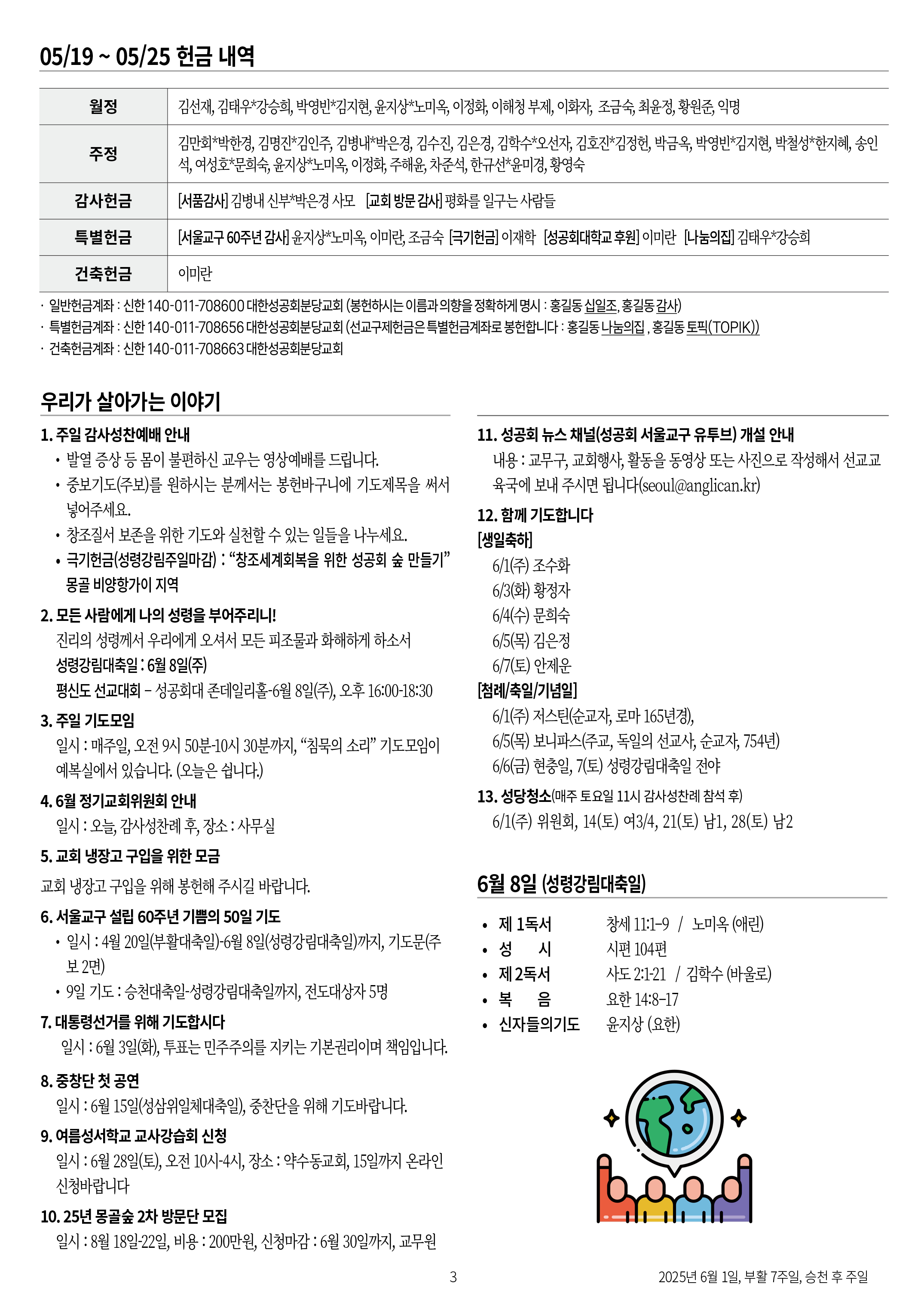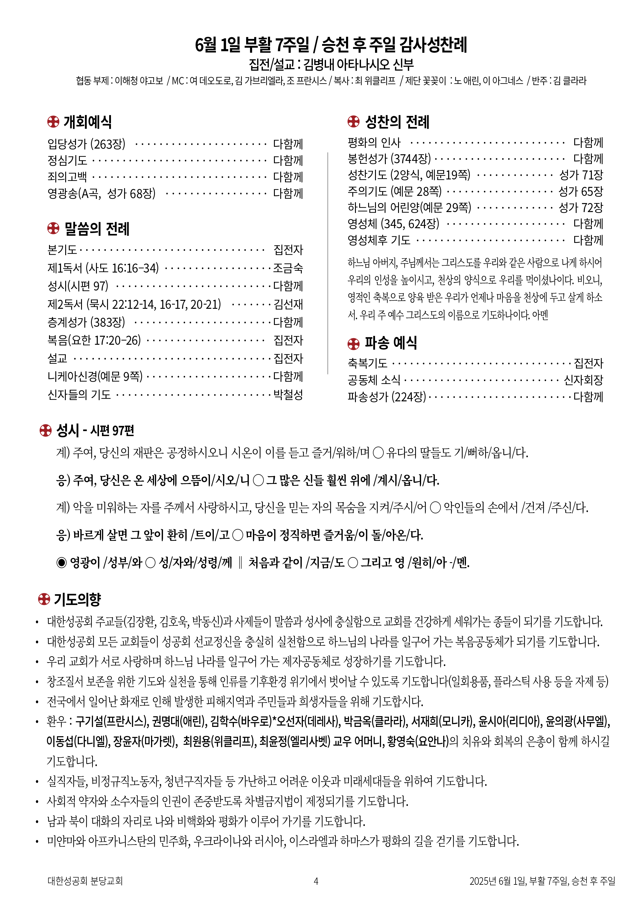 교회 주보 부활 7주일 by 분당교회 2025. 6. 1. 2025년 6월 1일 부활 7주일 승천 후 주일 공유하기 게시글 관리 대한성공회 분당교회 '교회 주보' 카테고리의 다른 글 성삼위일체대축일 (0) 2025.06.15 성령강림대축일 (0) 2025.06.08 부활 6주일 (0) 2025.05.25 부활 5주일 (0) 2025.05.18 부활 4주일 (0) 2025.05.11 관련글 성삼위일체대축일 성령강림대축일 부활 6주일 부활 5주일 댓글