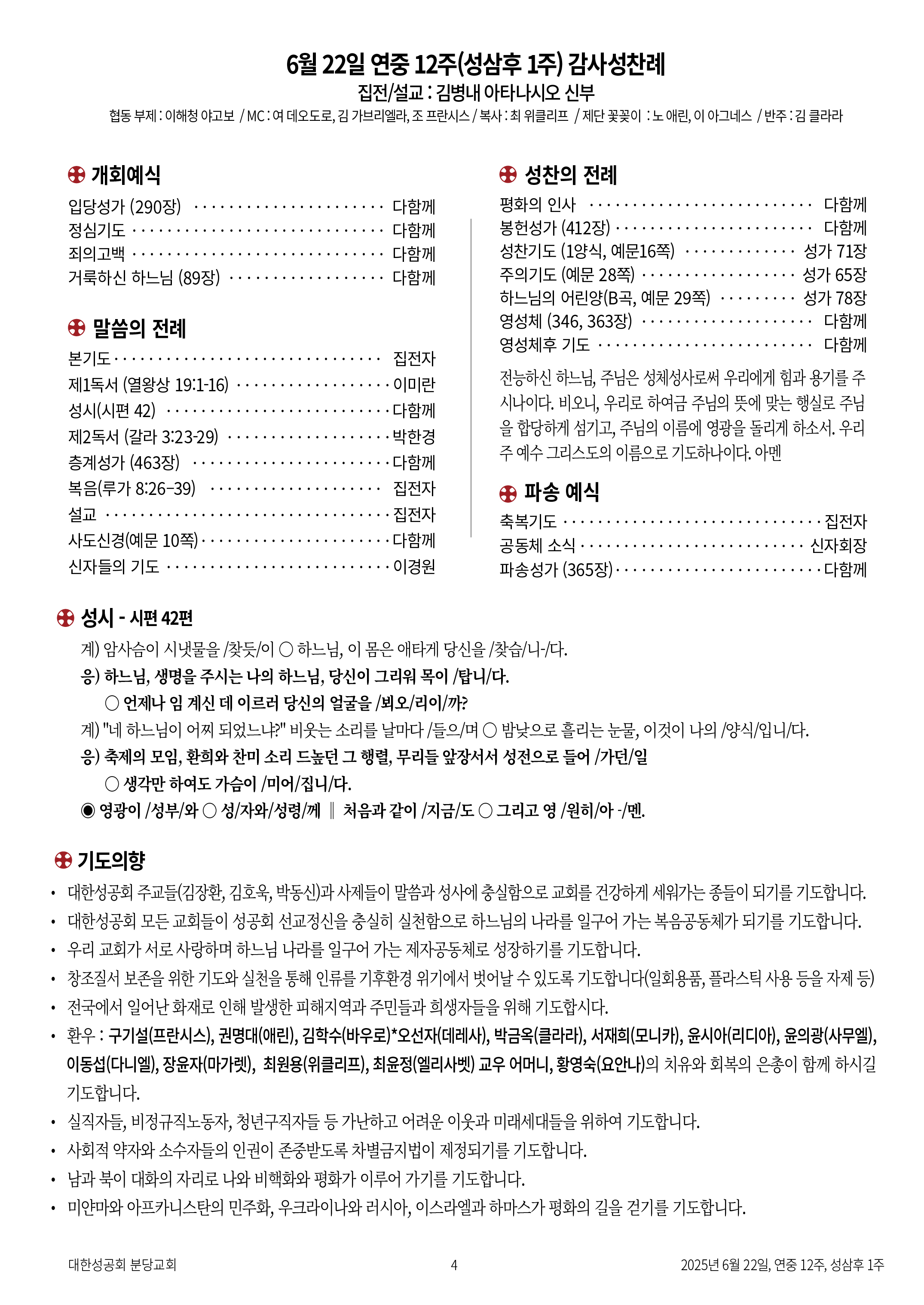 교회 주보 연중 1주 by 푸드라이터 2025. 6. 22. 2025년 6월 22일 연중 1주 / 성삼후 1주 공유하기 게시글 관리 대한성공회 분당교회 '교회 주보' 카테고리의 다른 글 맥추감사주일 (0) 2025.07.06 가족주일(연중 13주) (0) 2025.06.29 성삼위일체대축일 (0) 2025.06.15 성령강림대축일 (0) 2025.06.08 부활 7주일 (1) 2025.06.01 관련글 맥추감사주일 가족주일(연중 13주) 성삼위일체대축일 성령강림대축일 댓글
