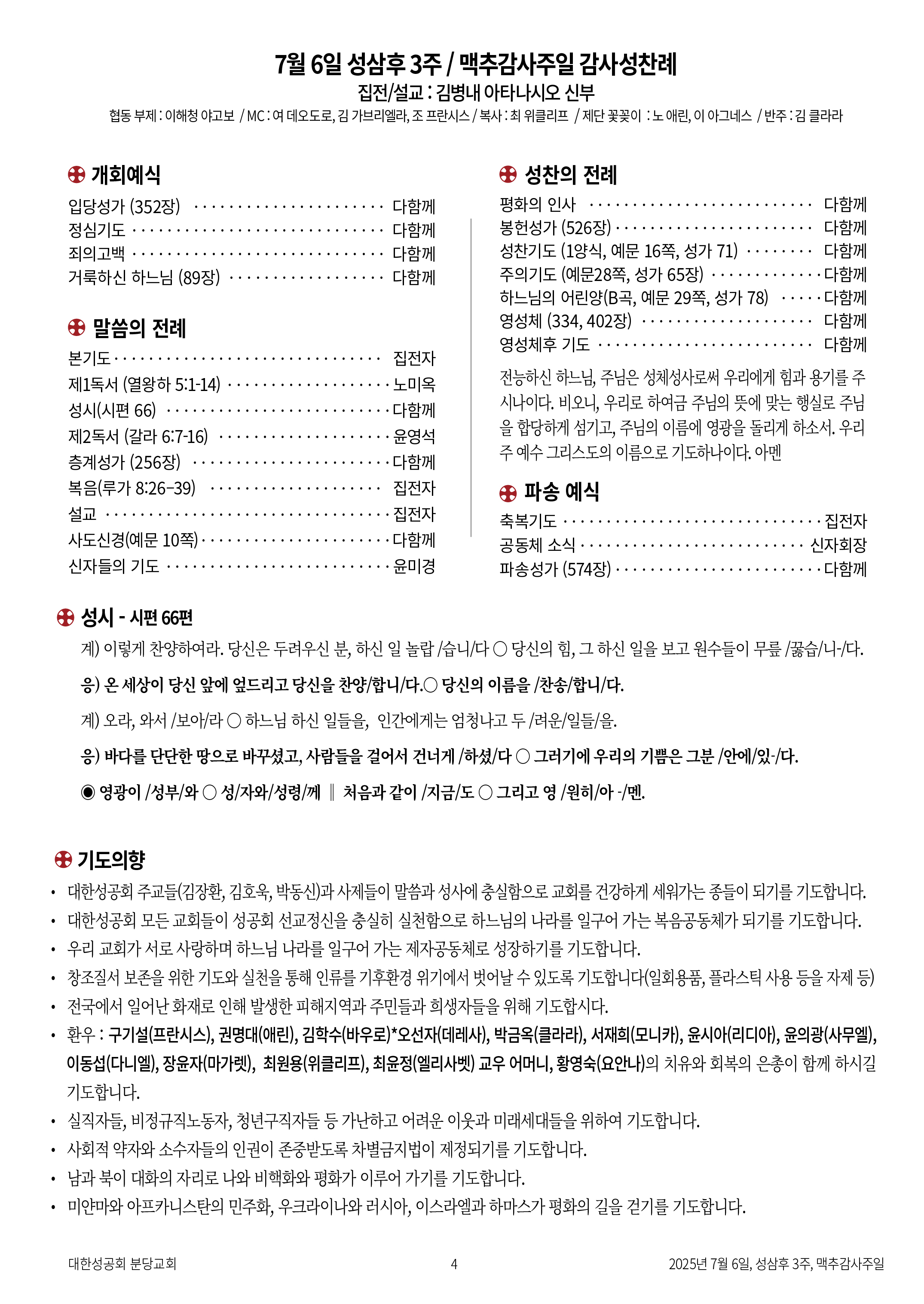 교회 주보 맥추감사주일 by 푸드라이터 2025. 7. 6. 2025년 7월 6일 맥추감사주일 성삼후 3주 공유하기 게시글 관리 대한성공회 분당교회 '교회 주보' 카테고리의 다른 글 연중 16주 (0) 2025.07.20 연중 15주 (0) 2025.07.13 가족주일(연중 13주) (0) 2025.06.29 연중 1주 (0) 2025.06.22 성삼위일체대축일 (0) 2025.06.15 관련글 연중 16주 연중 15주 가족주일(연중 13주) 연중 1주 댓글