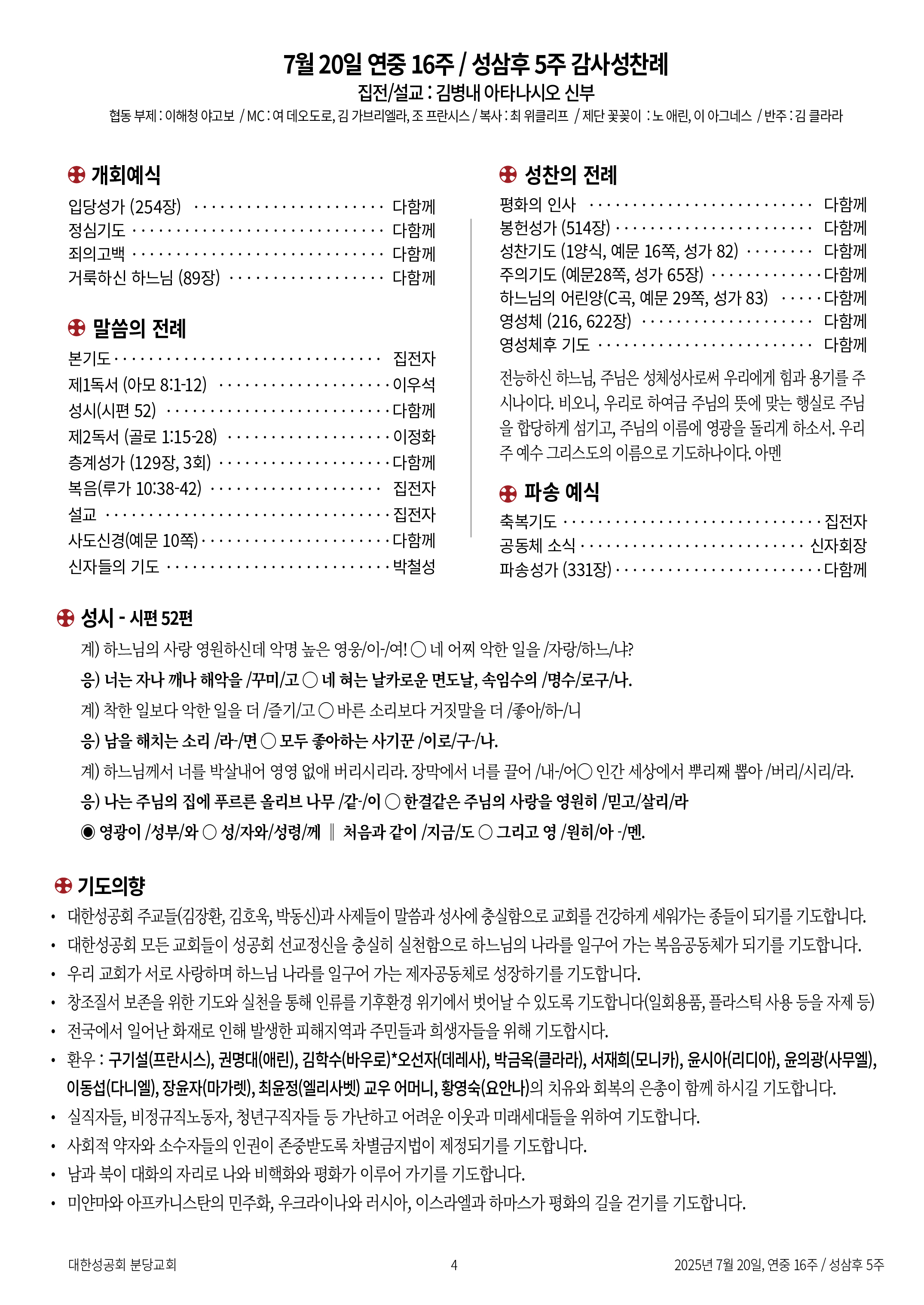 교회 주보 연중 16주 by 분당교회 2025. 7. 20. 2025년 7월 20일 연중 16주 공유하기 게시글 관리 대한성공회 분당교회 '교회 주보' 카테고리의 다른 글 연중 18주 (0) 2025.08.03 연중 17주 (0) 2025.07.27 연중 15주 (0) 2025.07.13 맥추감사주일 (0) 2025.07.06 가족주일(연중 13주) (0) 2025.06.29 관련글 연중 18주 연중 17주 연중 15주 맥추감사주일 댓글