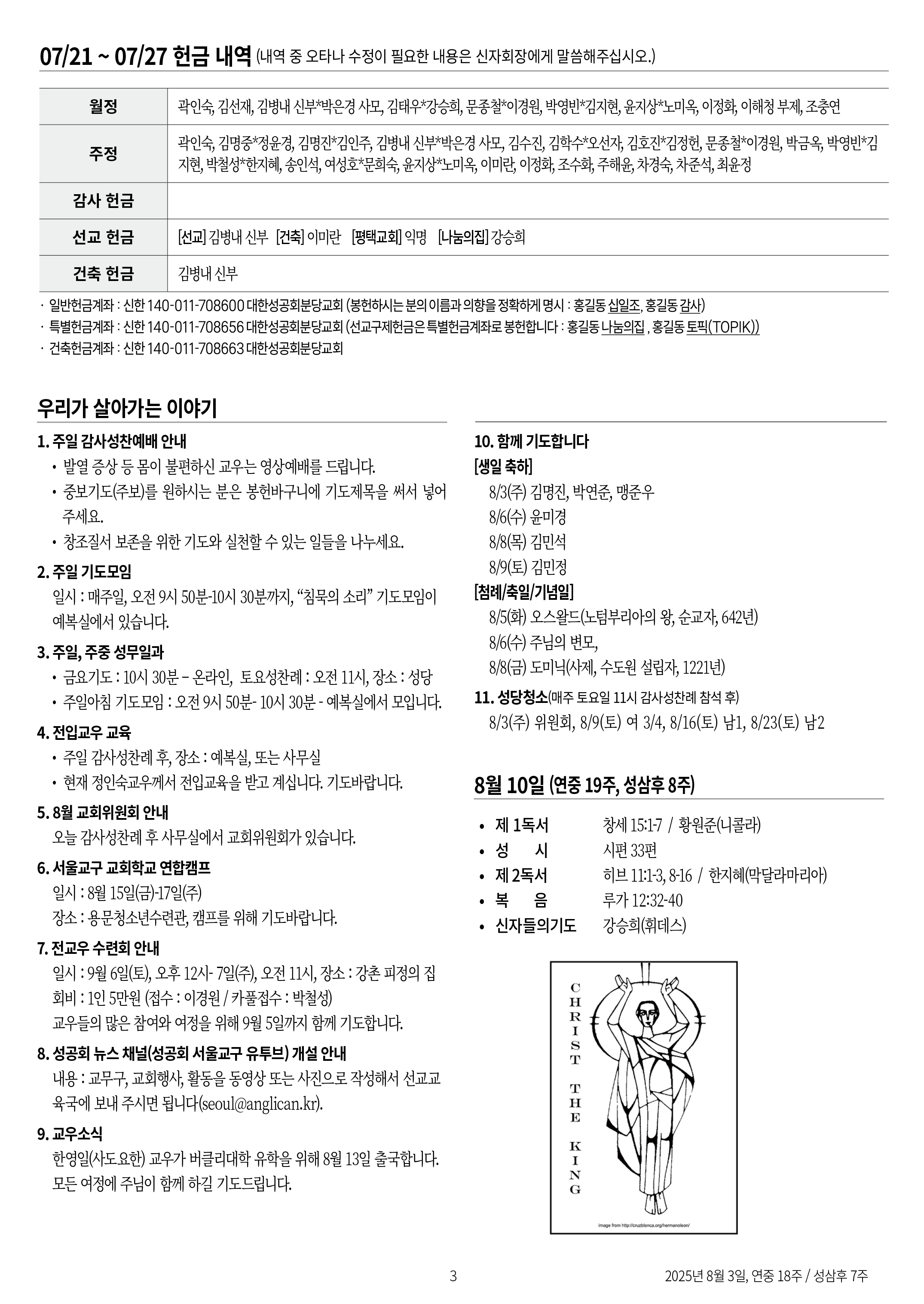 교회 주보 연중 18주 by 분당교회 2025. 8. 3. 2025년 8월 3일 연중 18주 공유하기 게시글 관리 대한성공회 분당교회 '교회 주보' 카테고리의 다른 글 연중 20주 (0) 2025.08.17 연중 19주 (0) 2025.08.10 연중 17주 (0) 2025.07.27 연중 16주 (0) 2025.07.20 연중 15주 (0) 2025.07.13 관련글 연중 20주 연중 19주 연중 17주 연중 16주 댓글