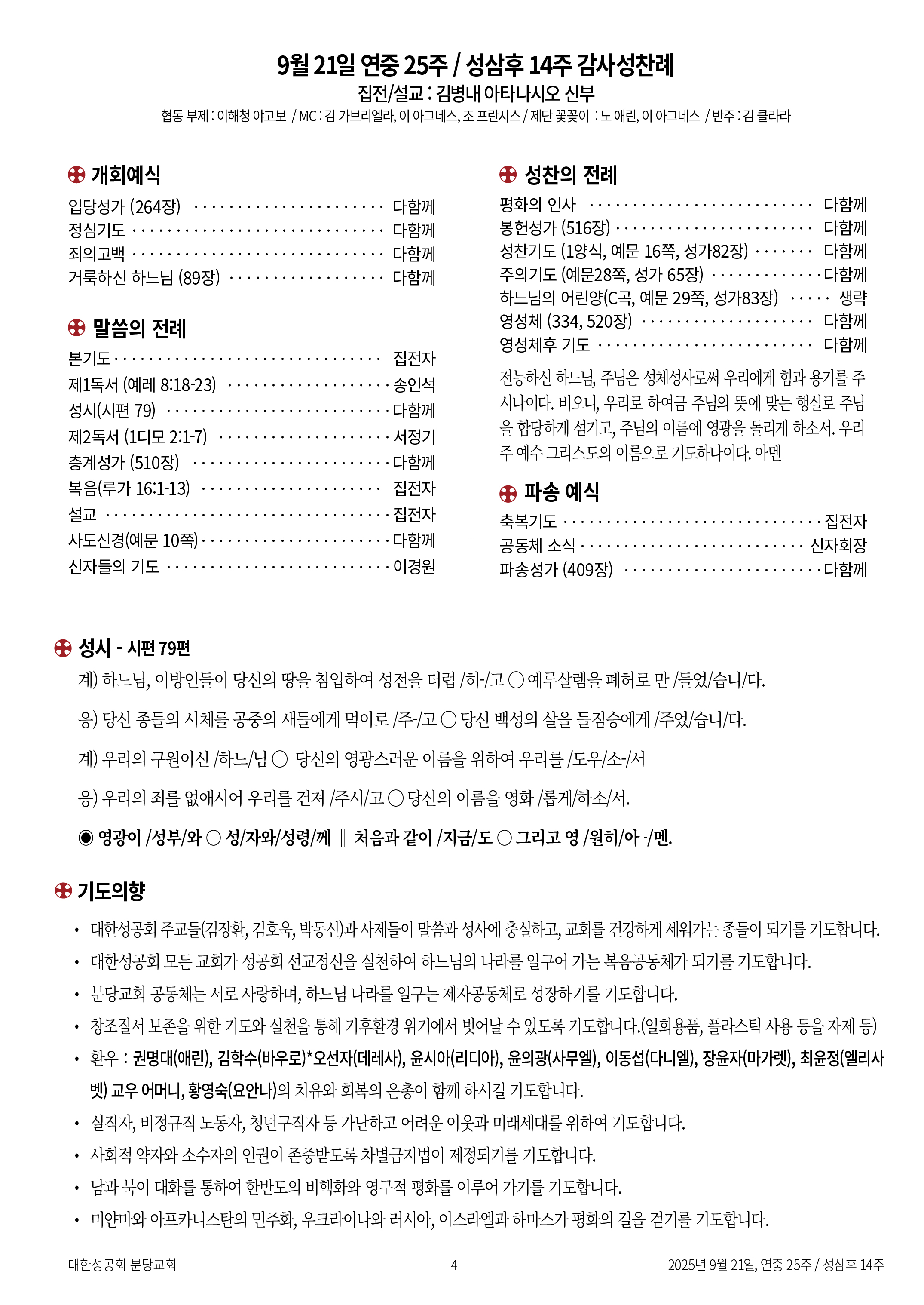교회 주보 연중 25주 by 분당교회 2025. 9. 21. 2025년 9월 21일 연중 25주 / 성삼후 14주 공유하기 게시글 관리 대한성공회 분당교회 '교회 주보' 카테고리의 다른 글 연중 27주 (0) 2025.10.05 관구설립 33주년 (0) 2025.09.28 연중 24주 (0) 2025.09.14 연중 23주 (0) 2025.09.07 연중 22주 (0) 2025.08.31 관련글 연중 27주 관구설립 33주년 연중 24주 연중 23주 댓글