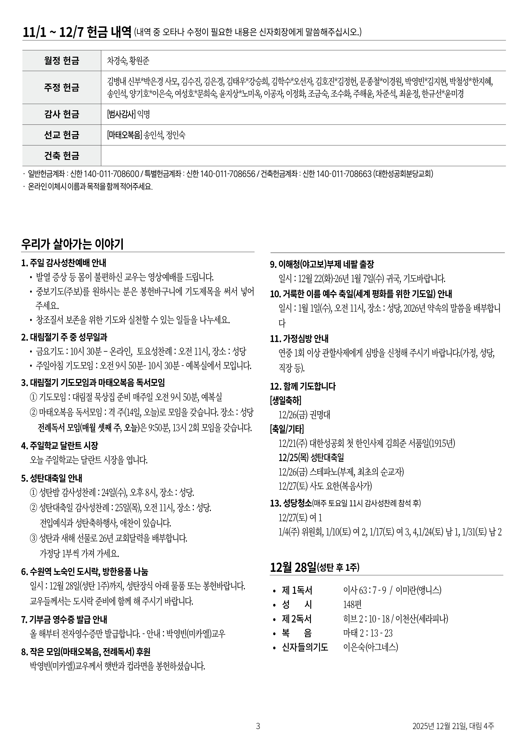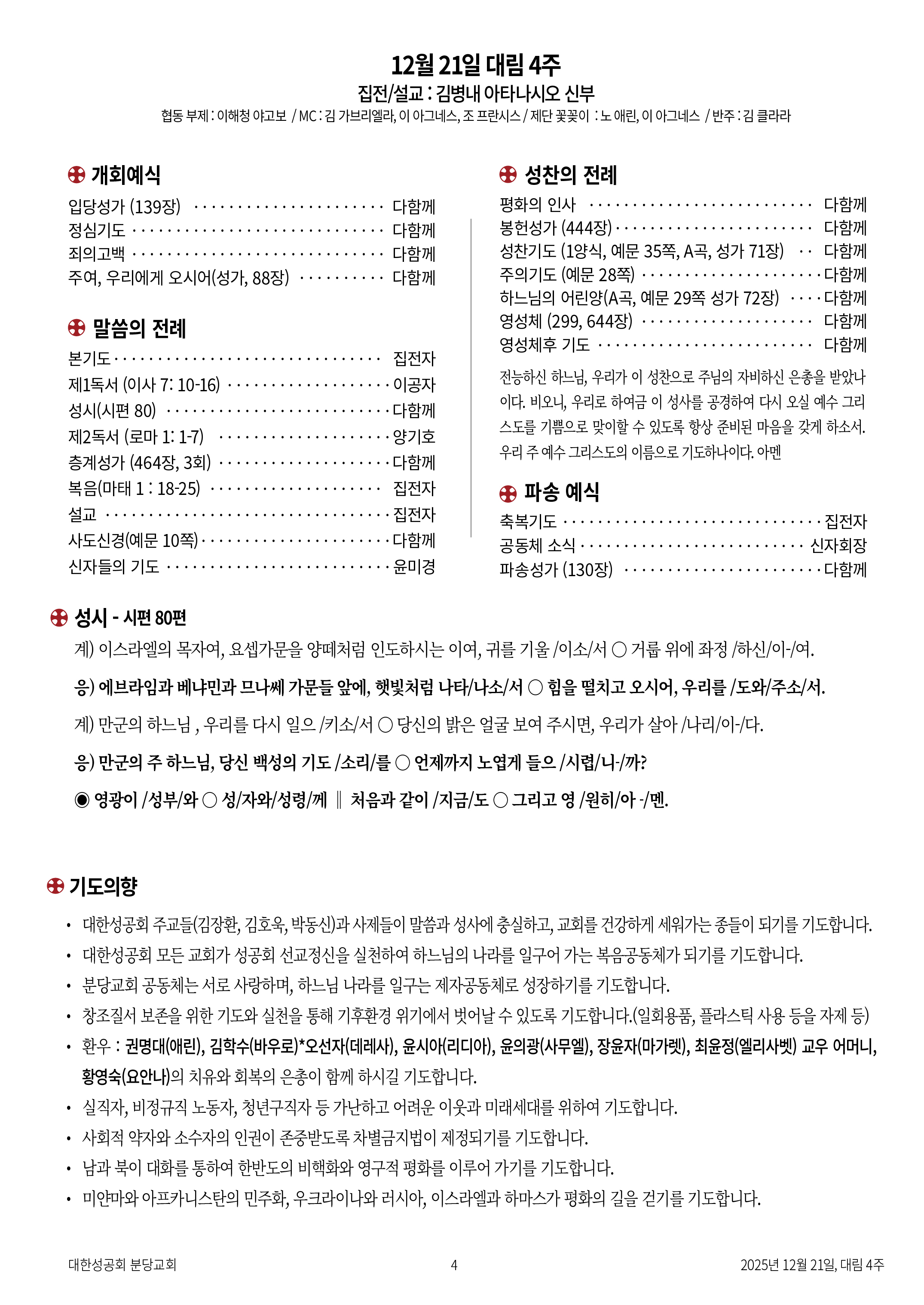 교회 주보 대림 4주 by 분당교회 2025. 12. 21. 2025년 12월 21일 대림 4주 공유하기 게시글 관리 대한성공회 분당교회 '교회 주보' 카테고리의 다른 글 성탄전야, 성탄절 (0) 2025.12.24 대림 3주 (0) 2025.12.14 대림 2주 (0) 2025.12.07 대림 1주 (0) 2025.11.30 왕이신 그리스도주일 (0) 2025.11.26 관련글 성탄전야, 성탄절 대림 3주 대림 2주 대림 1주 댓글