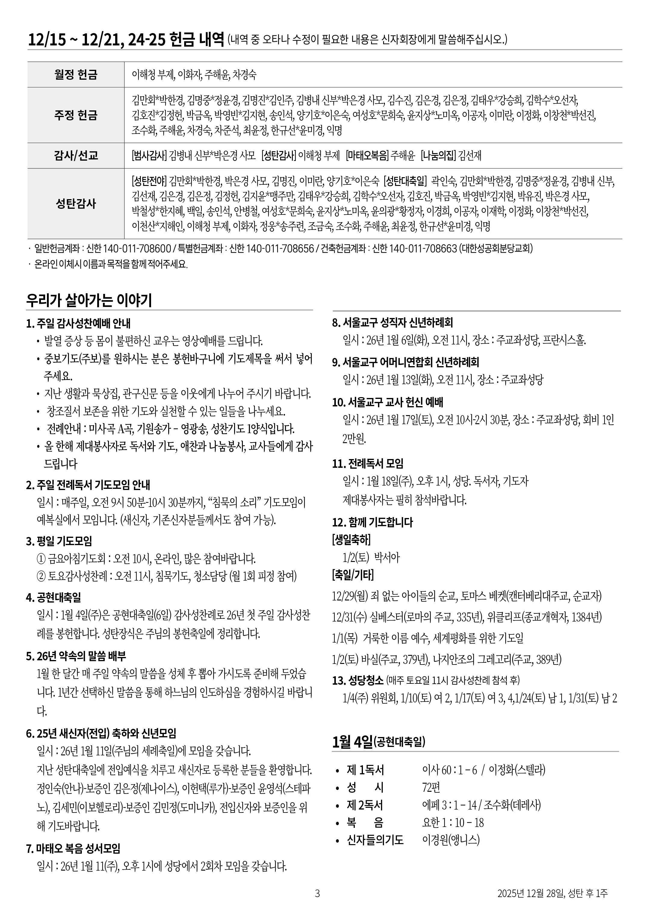 교회 주보 성탄 후 1주 by 분당교회 2025. 12. 28. 2025년 12월 28일 성탄 후 1주 공유하기 게시글 관리 대한성공회 분당교회 '교회 주보' 카테고리의 다른 글 연중 2주 (0) 2026.01.18 주님의 세례 (0) 2026.01.11 성탄전야, 성탄절 (0) 2025.12.24 대림 4주 (0) 2025.12.21 대림 3주 (0) 2025.12.14 관련글 연중 2주 주님의 세례 성탄전야, 성탄절 대림 4주 댓글