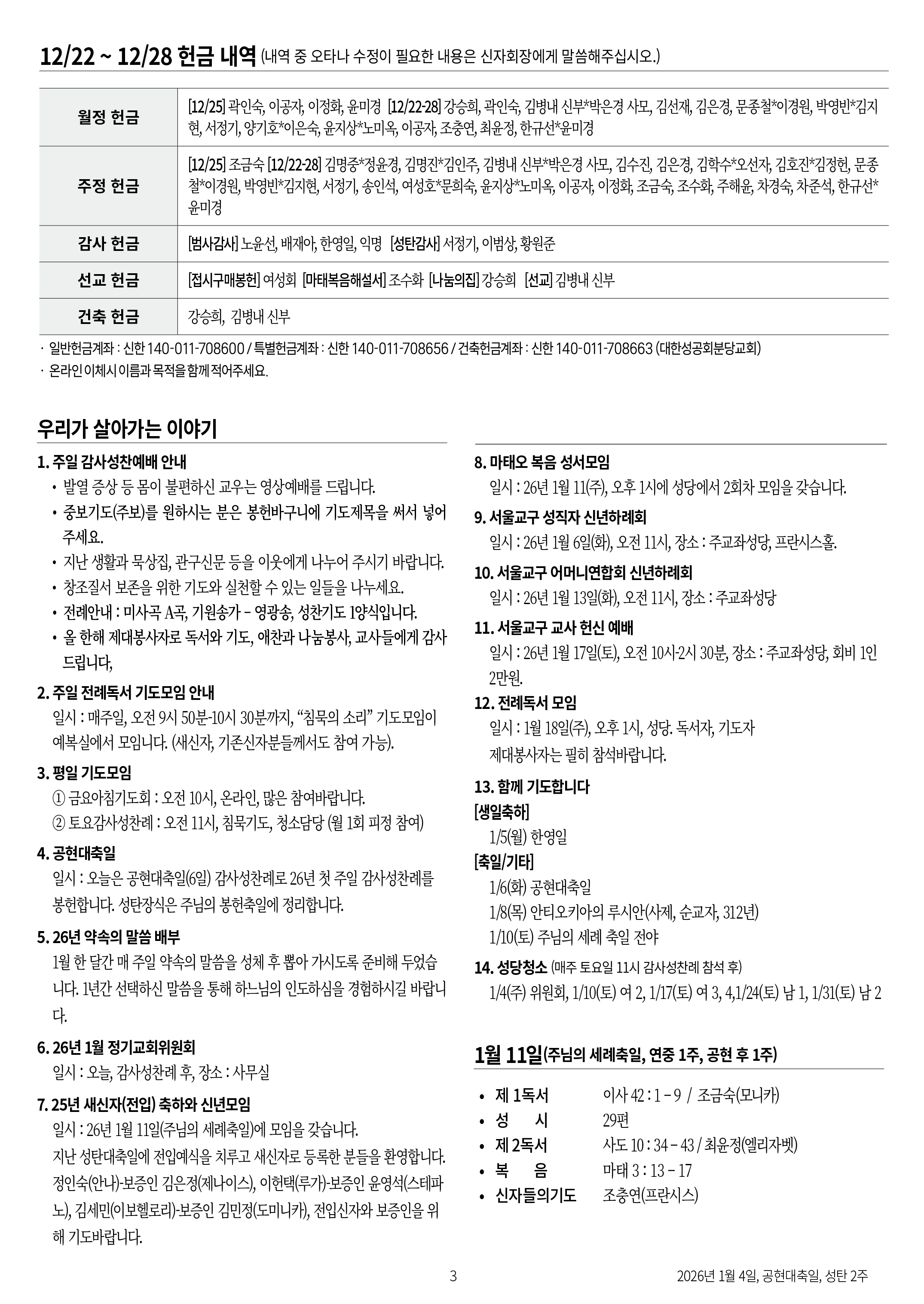 공현대축일 / 성탄 2주