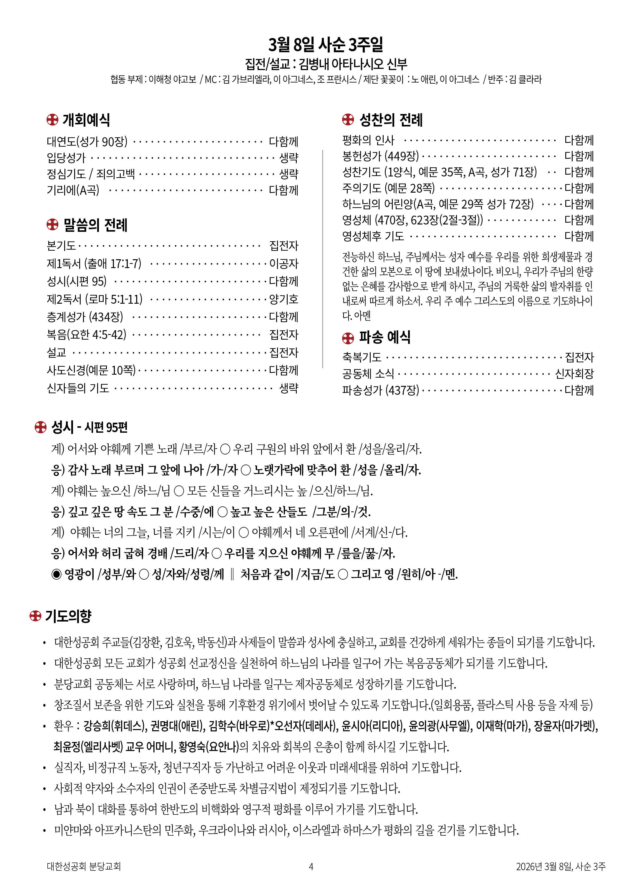 교회 주보 사순 3주 by 분당교회 2026. 3. 9. 2026년 3월 8일 사순 3주 공유하기 게시글 관리 대한성공회 분당교회 '교회 주보' 카테고리의 다른 글 사순 4주 (0) 2026.03.15 사순 2주일 (0) 2026.03.02 사순 1주 (0) 2026.02.22 연중 6주일 (0) 2026.02.15 연중 5주일 (0) 2026.02.09 관련글 사순 4주 사순 2주일 사순 1주 연중 6주일 댓글