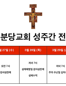 교회 소식155 故 지금식 안드레 교우 장례일정 故 지금식 안드레 교우 장례일정 (빈소: 분당서울대병원 영안실 13호)26일(화) 오전 9시 아침기도 16시 30분 입관 19시 30분 저녁기도 27일(수) 11시 발인예배 11시 30분 발인 13시 화장(성남화장장) 화장후 속초 장지 출발 2015. 5. 26. [공지] 분당교회 이전 결의 [공지] 분당교회 이전 결의 4월 26일 교회발전 특별위원회 결의 사항 2015년 4월 26일(일) 분당교회 교회발전특별위원회 특별회의를 개최했습니다. 지난 해 교회위원회 결의로 100명 출석 교회로 성장하기 위해 이전을 추진하여 후보지를 물색해 왔으며 지난 4월 19일에는 교회 이전 후보지 3곳에 대한 전교인 대상 설명회를 개최하고 다양한 의견을 함께 했습니다. 이에 따라 교회발전특별위원회에서는 다음과 같이 결의하였습니다. - 다 음 - 1. 판교(상가 7층)를 1차 후보지로 선정 우선협상 진행 및 계약 추진 * 우선협상대표는 여성호 재무위원과 김웅호 특별위원으로 함 * 다년 계약 및 기타 세부 계약 조건을 확인 후 계약을 진행 * 계약 후 현 건물주에게 통보하기로 함 2. 판교 이전 후보지 선정 이유.. 2015. 4. 28. 교회 바깥창 시트 작업 완료 8월 14일(화) 교회 바깥 창문에 교회를 알리는 시트 작업을 완료했습니다. 수고해주신 김은경 가브리엘라 어머니 회장님께 감사 드립니다. ^^ 2013. 8. 15. 전신자 신앙강좌 전신자 신앙강좌 오늘부터 10주간 주일 애찬 후 신앙강좌를 개최합니다. 이번 신앙강좌는 ‘고전명작을 통해 본 기독교 신앙’ 입니다. 신앙의 근본적인 문제를 감동적으로 표현한 고전명작을 통해 기독교 교리와 신앙의 깊이를 이해하고자 합니다. + 제1강 : 도스또예프스키 (5월 19일) + 제2강 : 도스토예프스키 (5월 26일) + 제3강 : 톨스토이 (6월 2일) + 제4강 : A.J. 크로닌 (6월 9일) + 제5강 : 이청준 (영화 밀양) (6월 16일) 제 1강 도스또예프스키 2013. 5. 19. 전신자 신앙강좌 전신자 신앙강좌 개최 5월 19일(성령감림대축일)부터 10주간 주일 애찬 후에 신앙강좌를 개최합니다. 이번 신앙강좌는 인류사를 빛낸 ‘고전명작을 통해 본 기독교 신앙’ 입니다. 신앙의 근본적인 문제를 감동적으로 표현한 고전명작을 통해 기독교 교리와 신앙의 깊이를 이해하고자 합니다. 많은 참여를 바랍니다. 첫 강좌는 도스또예프스키의 입니다. 대심문관의 전설은 도스또예프스키의 대하소설 '까라마조프 씨네 형제들'에 나오는 한 챕터 분량의 일부입니다.책이 있으신 분들은 책 중에서 해당 내용(약 20 페이지 정도)을 읽어오시고여건이 안되시는 분들은 인터넷에서 '대심문관의 전설'을 검색해보시면많은 정보가 있으니 좋은 글을 한번 정도 읽어보시면 많은 도움이 되실 것입니다. (책 구입은 http://www.yes24... 2013. 5. 13. 바우로회 주관 강화도 순례 여행 바우로회 (큰아버지회) 주관 강화도 순례 여행 예약을 받습니다. 분당교회 아버지회는 꽃피는 봄을 맞아 교인 친목을 위해 다음과 같이 강화도 순례 여행을 준비했습니다. 봄의 향기와 기운 그리고 성공회 신앙 1번지인 강화를 돌아보는 의미 깊은 시간을 함께 하시기 바랍니다. 본 여행에 함께 하실 교인분들은 김웅호(안토니오) 님께 신청해주시기 바랍니다. 1) 일자 : 4월 13일(토) 오전 8시 교회 출발 (7시 50분까지 교회 집합 완료해주세요.) 2) 주요 여행지 - 문화재이며 한국교회 토착화 신학의 상징인 '강화성당'- 김성수 주교님이 계신 장애인 직업 시설 '우리마을'- 역사 유적지 '광성보' 등 - 맛있는 점심도 함께 준비했습니다. 2013. 3. 31. 분당교회 성주간 전례 안내 대한성공회 분당교회 성주간 전례 안내입니다. 3월 26일(화) 오전 7시 : 감사성찬례 3월 27일(수) 오전 7시 : 감사성찬례 3월 28일(목) 저녁 7시 : 성제체정일 감사성찬례와 성체수직 3월 29일(금) 저녁7시 : 주의수난일십자가경배 3월 30일(토) 저녁7시 : 부활밤예식 2013. 3. 25. 2월 24일 교회 소식 1)사순절아침기도 사순절기간동안매일아침7시에기도를드립니다.(일,월제외)많은참여를바랍니다. 2) 대심방 안내 대심방을 실시합니다. 구역별 심방 일정을 게시하니 참고하시고, 별도 문의는 김은경 가브 리엘라 어머니 회장님 혹은 신부님께 부탁 드립니다. 3)1층리뉴얼을위한헌금안내 사무공간및예배중계시스템을구축중입니다.관련한특별헌금을부탁드립니다. 4)교적부정리를위한기초자료수집,신자세대부작성 배포한 교적부 양식에 교적 사항을 적어주시고, 신자세대부를 작성해주시기 바랍니다. 5)금요성경공부안내 금요 성경공부는 ‘요한복음’을 주제로 매주 금요일 오전 11시에 시작하오니 많은 참석 바 랍니다. 6)가정예배서신청 서울교구 선교국에서 가정예배서를 발간(격월간)합니다. 2개월분 1가정 2권 기준으로 4,000원, 1년 기준 한.. 2013. 2. 24. 설 명절 교회 소식 1) 사순절 재의 수요일 예배 안내 2월 13일은 사순절을 시작하는 재의 수요일입니다. 재 축복 성찬례는 저녁 7시에 봉행합니다. 2) 사순절 아침기도 사순절 기간 동안 매일 아침 7시에 기도를 드립니다. (일,월제외) 많은 참여를 바랍니다. 3) 대심방 안내 대심방을 실시합니다. 심방 가능한 일정을 정해서 신청서를 작성해 주시기 바랍니다. 4)1층 리뉴얼을 위한 헌금안내 사무공간 및