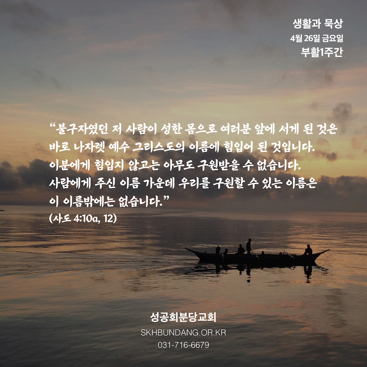 저도 예수님의 사도들처럼 그분 이름을 힘입어 오늘도 내일도 기적의 통로가 되고 싶습니다.