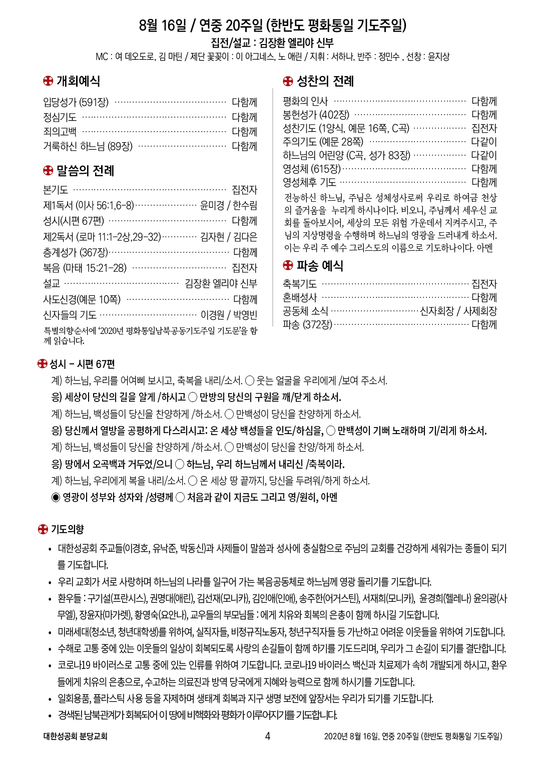 2020년 8월 16일, 연중 20주일