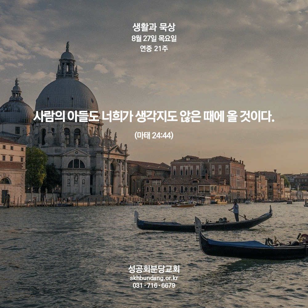44 사람의 아들도 너희가 생각지도 않은 때에 올 것이다. 그러니 너희는 늘 준비하고 있어라.”