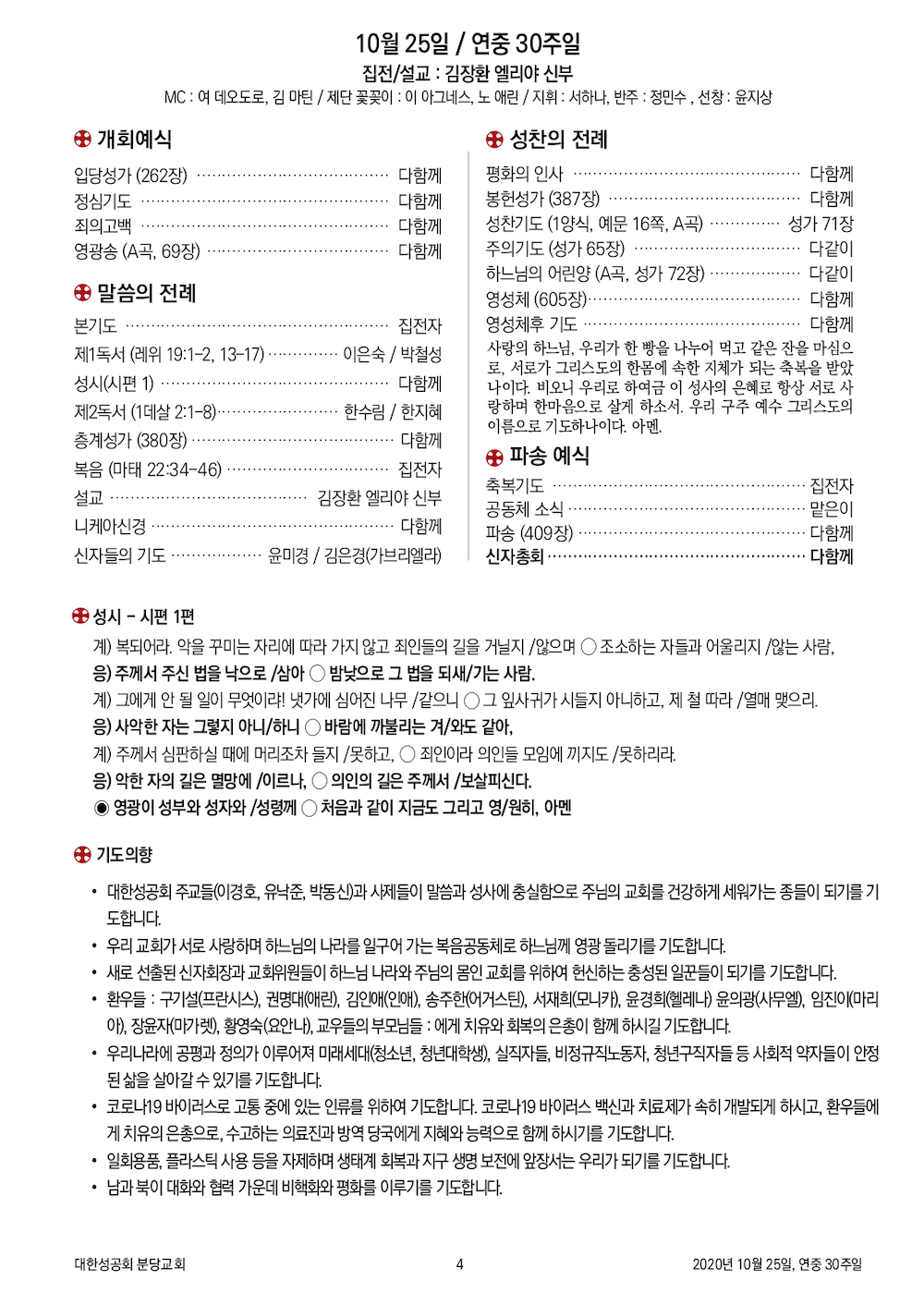 2020년 10월 25일, 연중 30주일