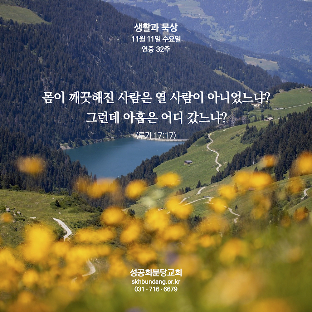 우리는 늘 하느님의 은총 안에 있고 주님의 동행하심으로 위로를 얻지만 그것을 누구나 잘 알아차리지 못합니다. 그리고 누구나 감사하는 마음을 갖는 것이 아닙니다. 물질의 풍족함에서 감사가 나오는 것이 아니라 우리의 감사 속에서 믿음의 풍족함이 나올 것입니다. 나는 감사를 아는 한 사람일까요, 자기만족만 아는 아홉에 속해 있을까요?