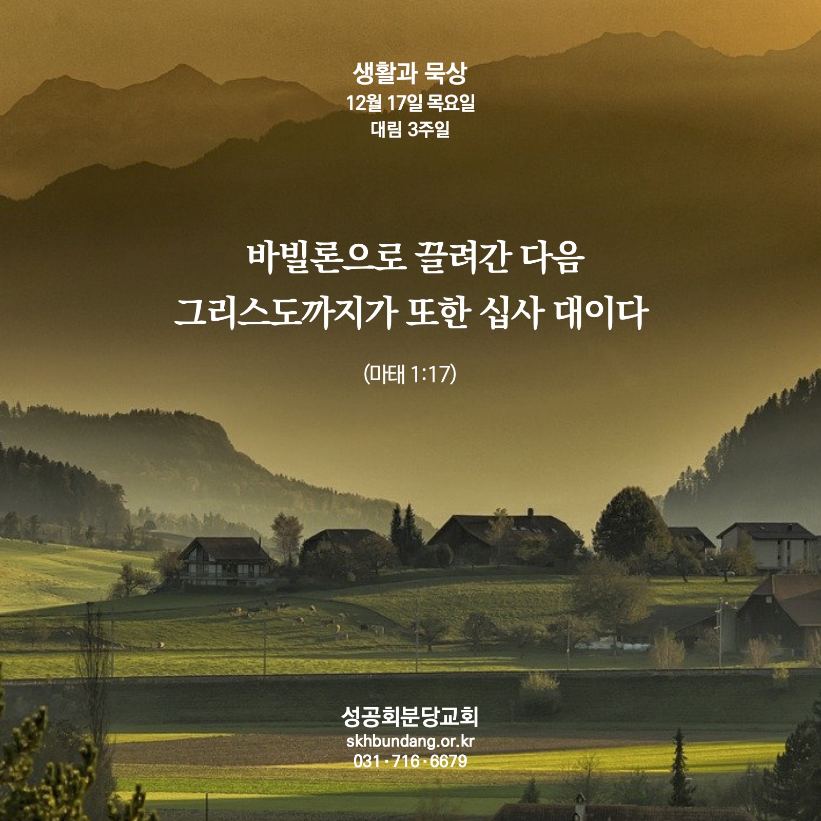 이번 기도에는 '바빌론'으로 끌려간 포로자들이 노역에 시달리던 시대상과 한국의 노동현장이 맞물려 떠오릅니다. 그리고 보니 예수님이 태어나신 시대도 남의 나라 속국이었습니다. 성탄이 나에게는 더 이상 어릴 적 판타지 같고 동화 같은 기쁨의 절기가 아닙니다. 프란시스 성인이 예수 수난을 생각해 꺼이꺼이 울어 그 울음소리가 멀리까지 들렸다는 이야기가 있는데 나는 이제야 성탄은 기쁨이라는 공식을 벗어버리고 아기 예수님이 애처롭게만 느껴집니다. 태어날 당시 그분의 현실과 시대 사람들의 암울함, 이 속에 탄식하는 소리와 끊임없이 갈구하는 부르짖음이 들립니다. 그래서 간절한 구원의 빛을 좇다 결국은 애처로운 아기 예수님이 희망이 되었습니다. 참으로 역설적인 구원의 길은 그분을 사랑해야만 알 수 있습니다.