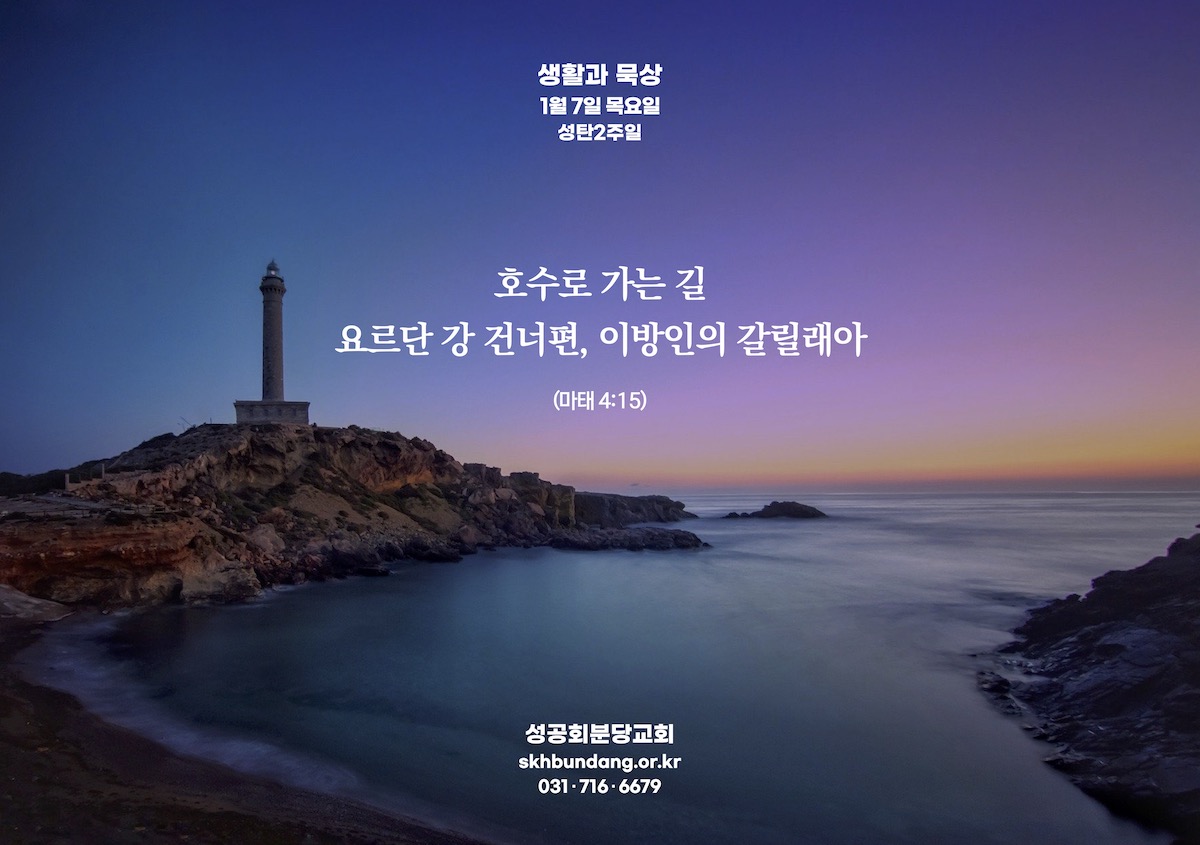 새로운 곳에서 새로운 일을 하기 위해 가시던 길, 그 길은 예언자 이사야가 말한 즈블룬과 답달리 호수로 가는 길이었습니다. 그 호수로 가는 길 위의 예수님을 떠올려 봅니다. 그리고 그 마음을 제 마음 안에 담아봅니다. 슬픔, 두려움, 희망, 용기 ... 그 어떤 단어로도 표현할 수 없는 마음이었을 것 같습니다. 그러나 분명한 건 예수께서 그 길을 가신 것은 어둠 속에 앉은 백성이 큰 빛을 보고, 죽음의 그늘진 땅에 사는 사람들에게 빛이 비치는 하늘의 뜻을 이루기 위함이었다는 것입니다. 지금 내가 가는 길을 잠시 멈춰 바라봅니다. 어떤 길을 가고 있는지, 어디를 향해 가고 있는지, 누구를 바라보고 있는지, 무엇을 이루기 위함인지, 이 길을 가는 내 마음 안에는 무엇이 있는지...