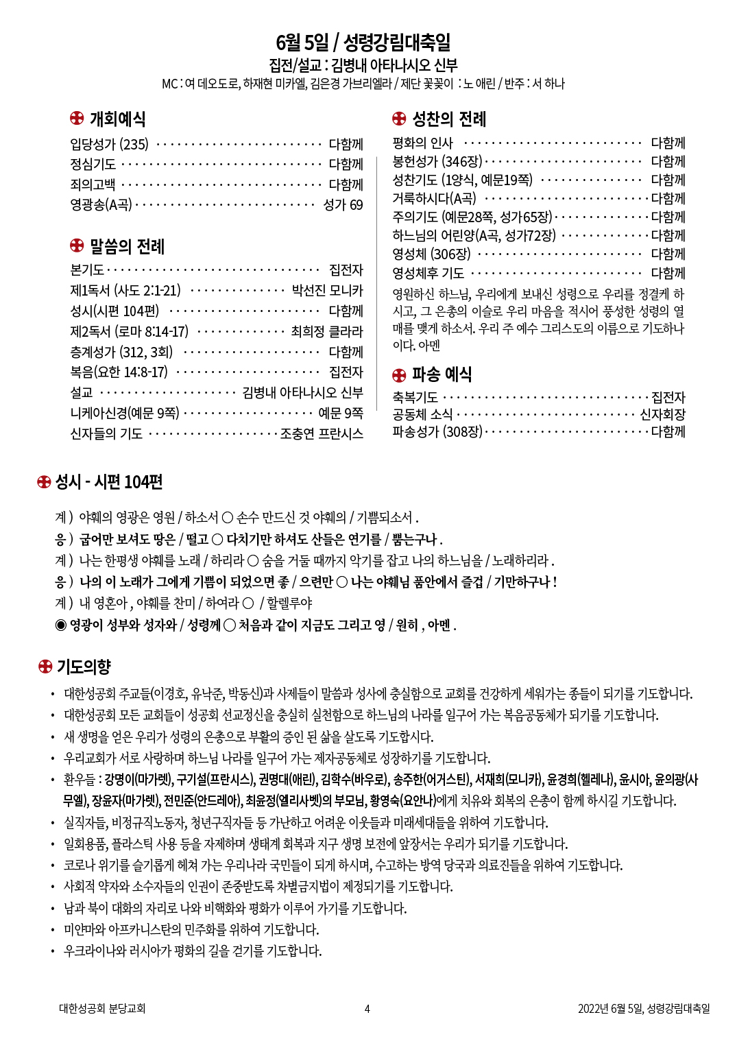 성령강림주일 교회주보